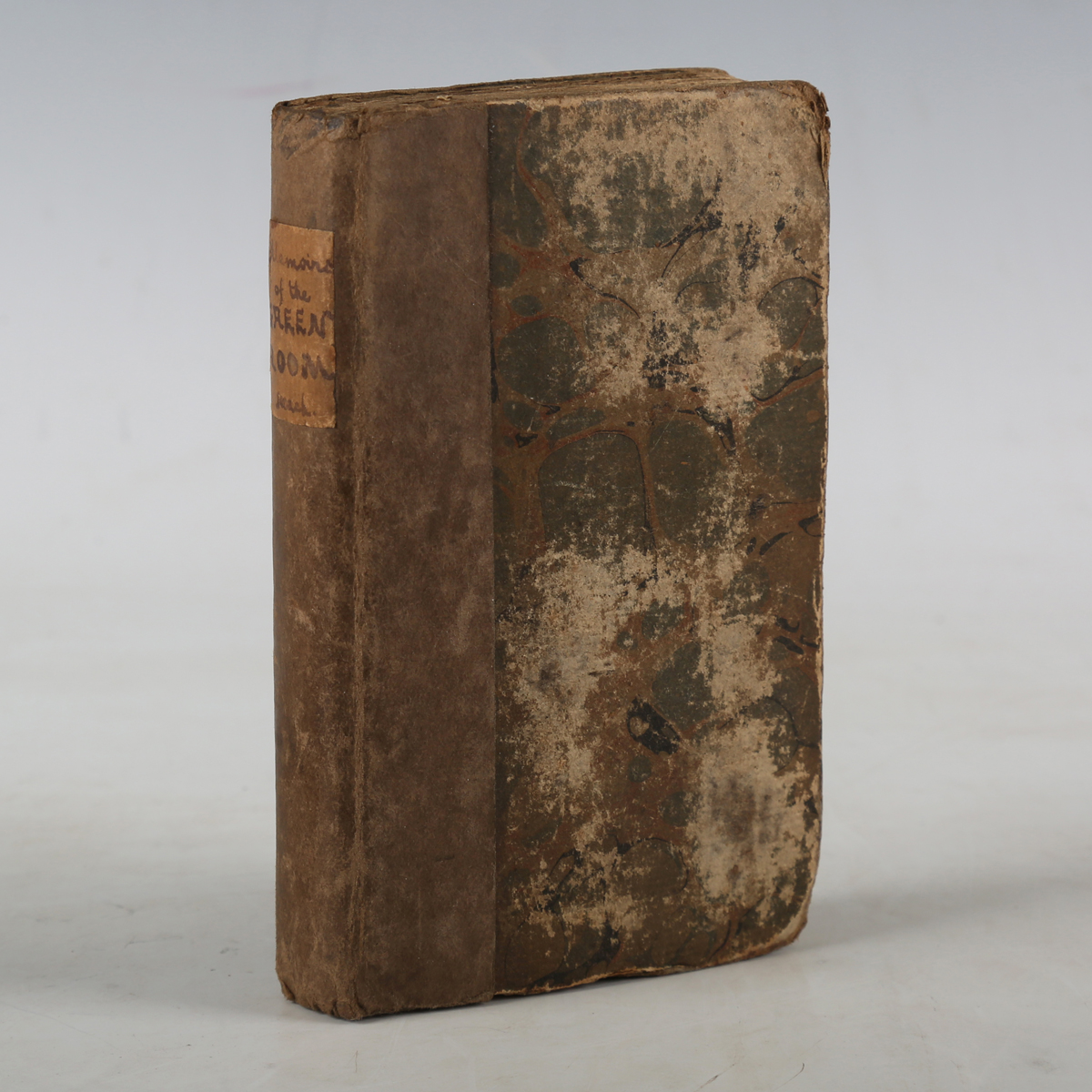 THEATRE. – [Joseph HASELWOOD.] Roach’s Authentic Memoirs of the Green Room, Containing the Lives of all the Performers of the Theatres Royal. London: by J. Roach at the Britannia Printing Office, 10th February 1796. Engraved frontispiece by Isaac Cruikshank, engraved vignette to title. (Marginal chipping to A-A2, some damp-staining to frontispiece, old tape repair to inner hinge, contemporary ink marks to front pastedowns.) [Bound with:] Roach’s New and Complete History of the Stage, from Its origin to its present state. London: J. Roach, 1796. Engraved frontispiece by Isaac Cruikshank, engraved vignette to title, ‘Index’, publisher’s advertisements to rear. (Browning.) 12mo (156 x 91mm.) Near contemporary boards, paper label with manuscript lettering to spine (old tape repair to spine, heavily rubbed). Provenance: R.F. Broadbent (ink stamp to upper margin of A-A2).