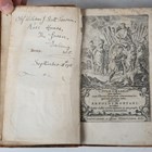 CAESAR, Julius Gaius. – C.Ivlii Caesaris quae extant. Amsterdam: House of Elzevier, 1670. 8vo (199 x 109mm.) Engraved allegorical title, engraved folding map, 3 engraved illustrations, text in Latin. (Browning, lacking rear blank, marginal loss to one illustration.) Near contemporary calf, red morocco lettering piece to spine (extremities heavily rubbed, some loss at top of spine). Provenance: Newton Charles Ogle (bookplate to front pastedown and ink inscribed to front and rear pastedown); William J. Scott Cowan (ink inscribed verso front blank, dated 1931). – And a further volume ([Thomas Brodrick’s ‘A Compleat History of the Late War in the Netherlands’, 1 vol. only, 10 double-paged plans [of 14], 1713, 4to]) (2).