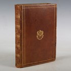 IRELAND, Samuel. Picturesque Views on the River Medway, from the Nore to the Vicinity of its Source in Sussex. London: T. and J. Egerton, 1793. First edition, 4to (218 x 155mm.) Half-title, additional sepia aquatint title-page, 28 aquatint plates, map, 1p. publisher’s advertisements, tissue-guards. (Toning.) Contemporary calf, armorial gilt to covers with ‘Semper Fidelis’ motto (extremities heavily rubbed). Provenance: John Smith, Sydling House, Dorset (armorial bookplate to front pastedown and armorial gilt to covers).