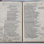 OVIDIUS, Naso (Publius). – George Sandys (translator). Ovid’s Metamorphosis Englished by G.S. London: [William Stansby], 1626. Small folio signed in 4s (241 x 155mm.) Engraved title by T. Cecill laid down, ‘The Minde of the Frontispiece’ poem mounted verso title, heavily annotated in a near contemporary hand to margins. (Lacking the portrait of Ovid, lacking Ss6 the final imprimatur leaf, the dedication had been printed over the title-page which is laid-down, browning, occasional minor soiling, marginal loss to O1, text slightly affected.) Contemporary calf, blind-stamped (calf peeling at upper joint). Note: the annotations are both legible and informative. George Sandys worked on this translation while employed as a treasurer in the colony of Virginia in the period 1621-1625. It makes this the first major literary work written in America. Provenance: Lewis Spencer (ink name to first blank); Arb. Reeves (ink name to A1).