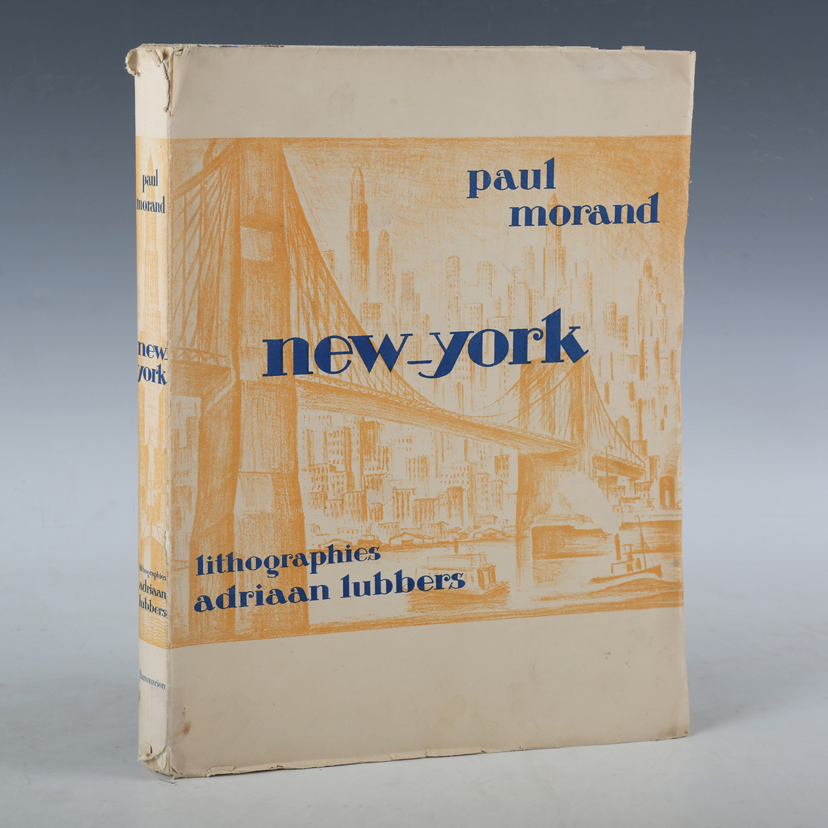MORAND, Paul. New-York. Paris: Ernest Flammarion, 1931. Limited edition, this being number 122 of 215 copies, 4to (328 x 248mm.) 10 full-page lithographs by Adriaan Lubbers, illustrations in the text. (Mild toning.) Original printed card covers (wear to spine ends, crease to spine).
