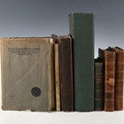 SHAKESPEARE, William. – A.T. BARTON (translator). Gulielmi Shakespeare Carmina Quae Sonnets Nuncupantur Latine reddita ab al vredo Thoma Barton. London: Medici Society, 1913. Limited edition, this being number 139 of 150 copies only, 4to (246 x 156mm.) Title printed in black and blue, 8pp. publisher’s prospectus loosely inserted. (Toning.) Original wrappers (chipped, sunned to spine, ink note to spine and upper wrapper). Provenance: Christ’s Hospital (embossed stamps to upper wrapper and first blank); Richard Lee (portrait presentation plate verso upper wrapper). Note: a somewhat peculiar translation of Shakespeare’s sonnets into Latin. – And a further six miscellaneous volumes (including G.W. Hill and W.H. Frere’s ‘Memorials of Stepney Parish’, [maps torn], 1890-1891, 8vo, and Thomas Dekker’s ‘The Seven Deadly Sins’, 1905, 4to, and Mark Beaufoy’s ‘Nautical and Hydraulic Experiments’, 1834, 4to) (7).