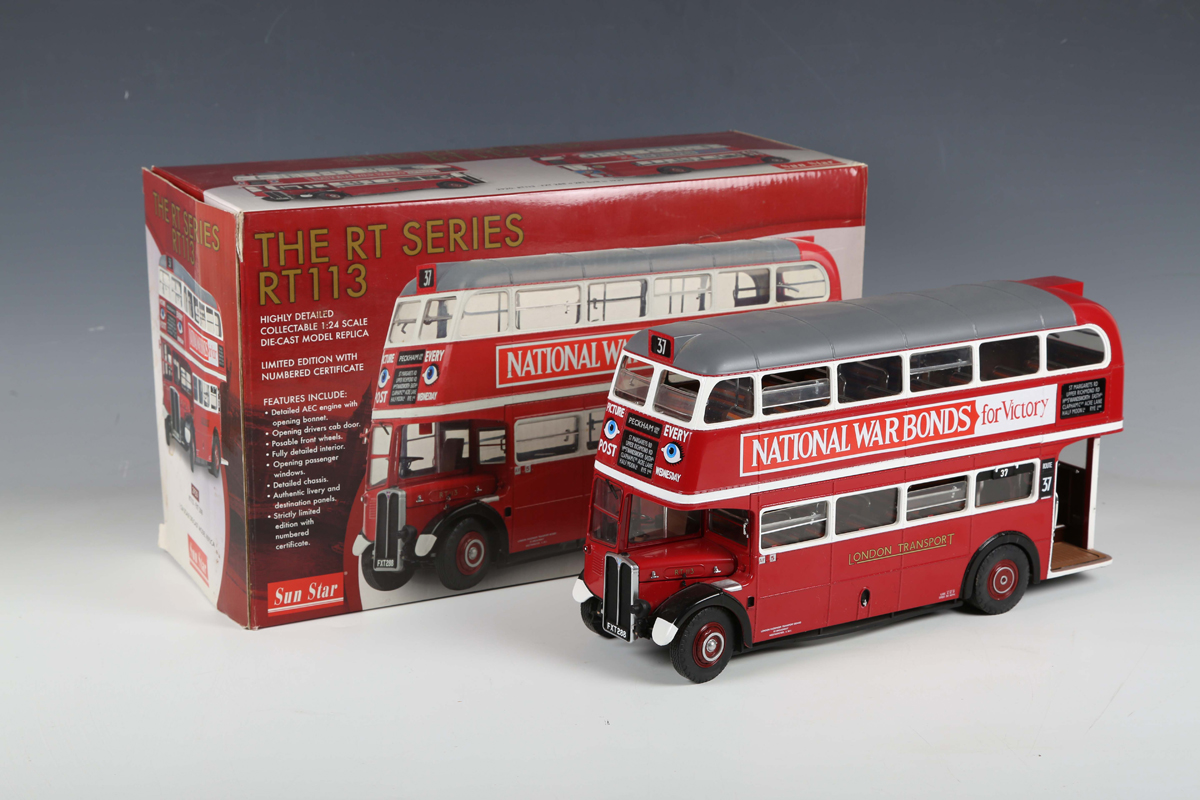 A Sun Star No. 2920 1:24 scale model of the RT Series RT113 double-decker bus 'London Transport', boxed with wing mirrors and certificate, No. 366/2999 (some minor faults).
