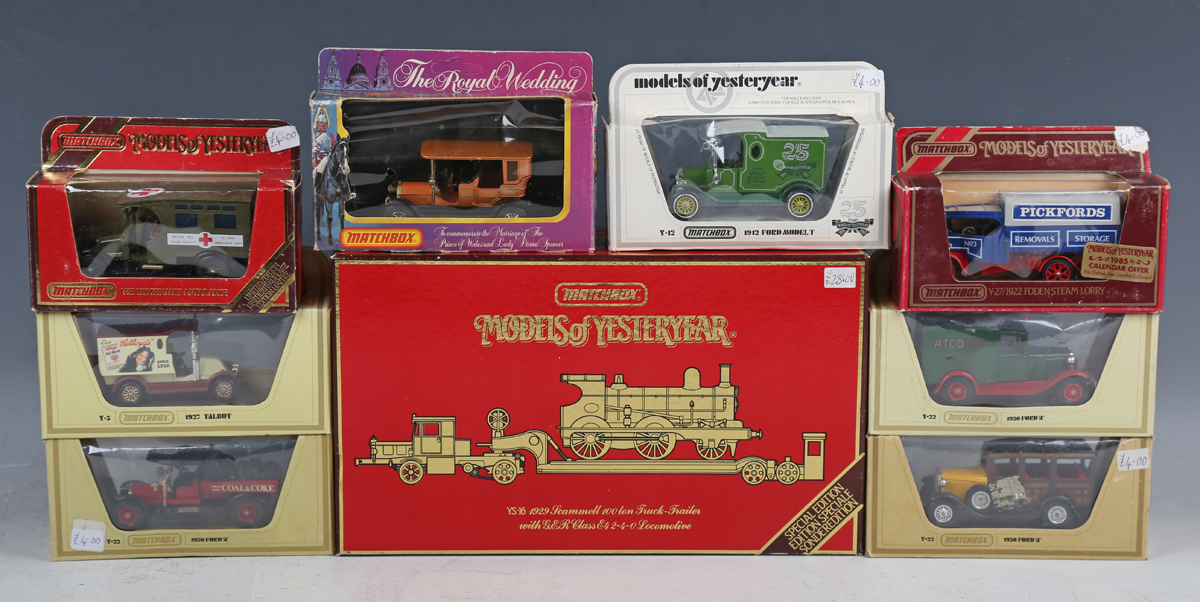 A collection of Matchbox 1-75 and Models of Yesteryear vehicles, including No. 44 Rolls-Royce Phantom V, No. 74 Daimler bus, Y-22 1930 Ford A and Y-12 1912 Ford Model T van, some boxed (playwear, paint chips, repainting and alterations).