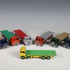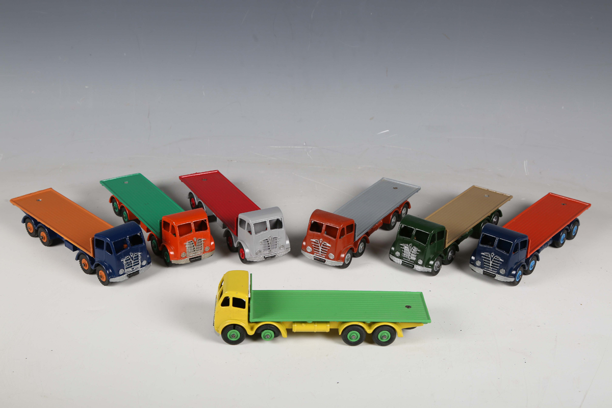 Seven Dinky Supertoys No. 904 Foden flat trucks (formerly with chains), and eight No. 904 Foden flat trucks with chains (repainting, paint chips and alterations).
