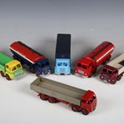Four Dinky Supertoys Foden lorries, comprising tanker 'Regent', two wagons and box van 'Lyons Swiss Rolls', a Leyland Octopus tanker 'Esso' and a Leyland Octopus wagon (repainting, paint chips and alterations).