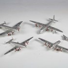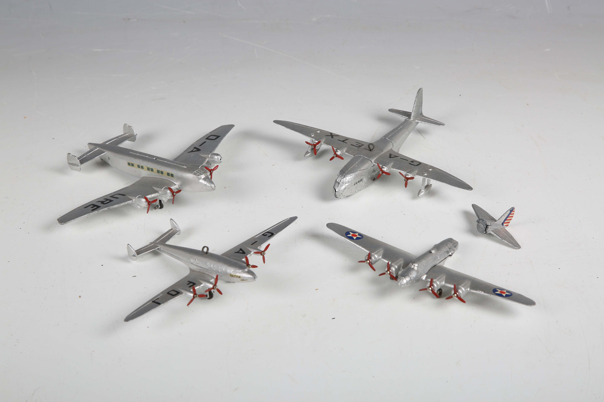 Four pre-war Dinky Toys aircraft, comprising No. 62n Junkers Ju90, No. 60r Empire Flying Boat 'Ceres', No. 62w Frobisher and No. 62g Flying Fortress (fatigue, faults and two gilding hooks missing).