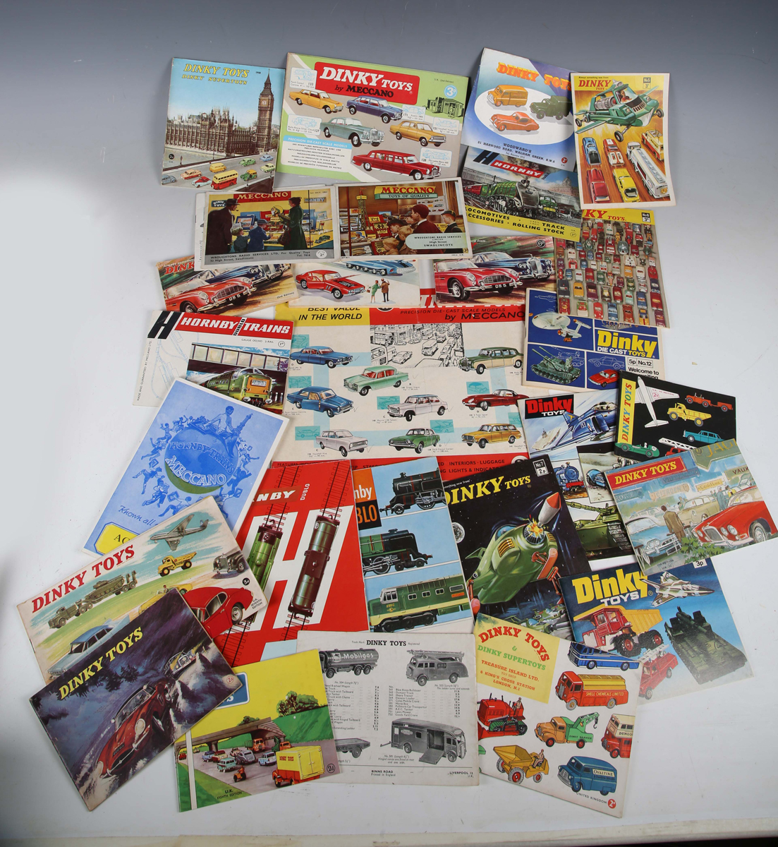 A collection of Dinky Toys catalogues, including September 1952, other 1950s, 1960s and 1970s, together with a group of Hornby Dublo three and two-rail catalogues, track plans and Meccano catalogues.