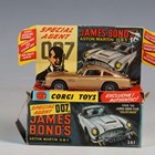 A Corgi Toys No. 261 James Bond's Aston Martin DB5, boxed, with diorama and bandit figure (minor paint chip, diorama lightly creased, box lacking one end flap and marked with original owner's name).