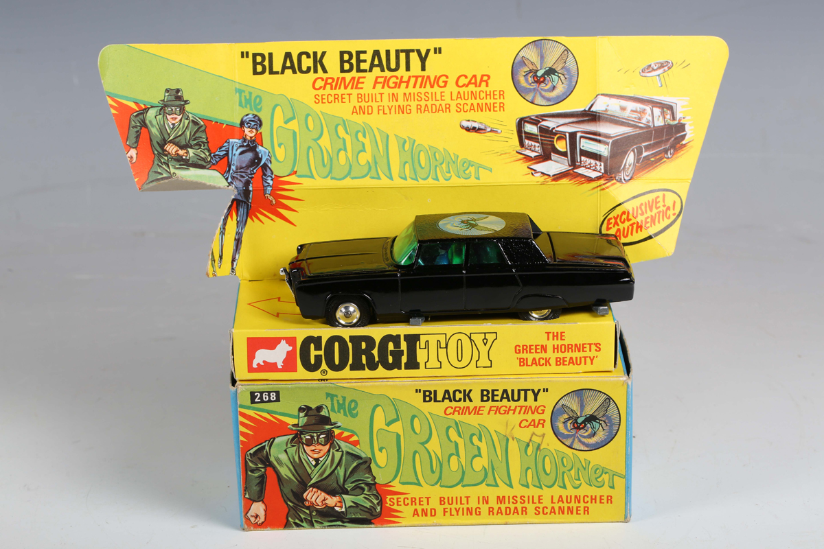 A Corgi Toys No. 268 The Green Hornet's Black Beauty, boxed, with diorama, four missiles and four radar scanners (diorama lightly creased and torn along a creased edge, box lightly creased and torn and marked with original owner's name).