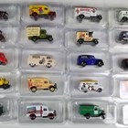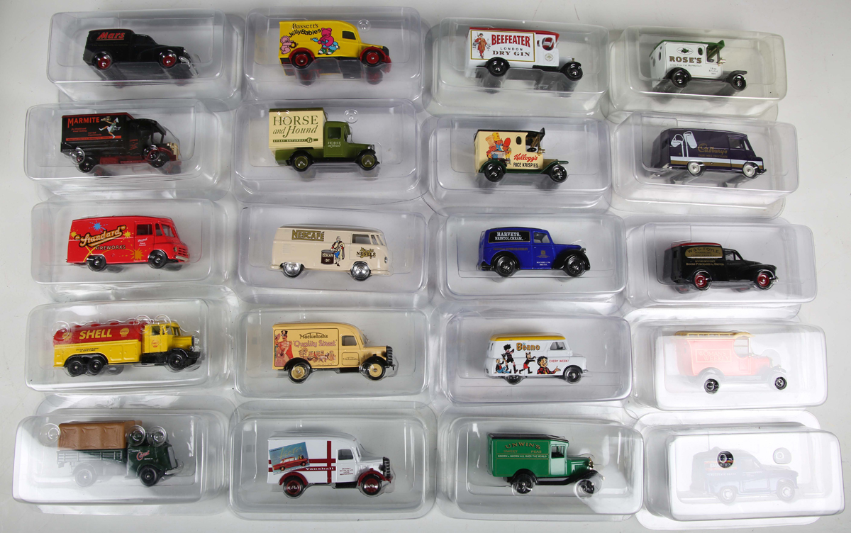 A collection of Hachette Days Gone By Classic Trucks and Vans model vehicles and associated magazines.