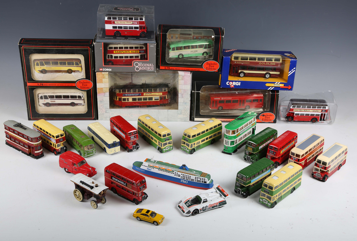 A group of Corgi Original Omnibus Exclusive First Editions, ERTL and other modern diecast vehicles, including buses, coaches and aircraft, boxed and loose.