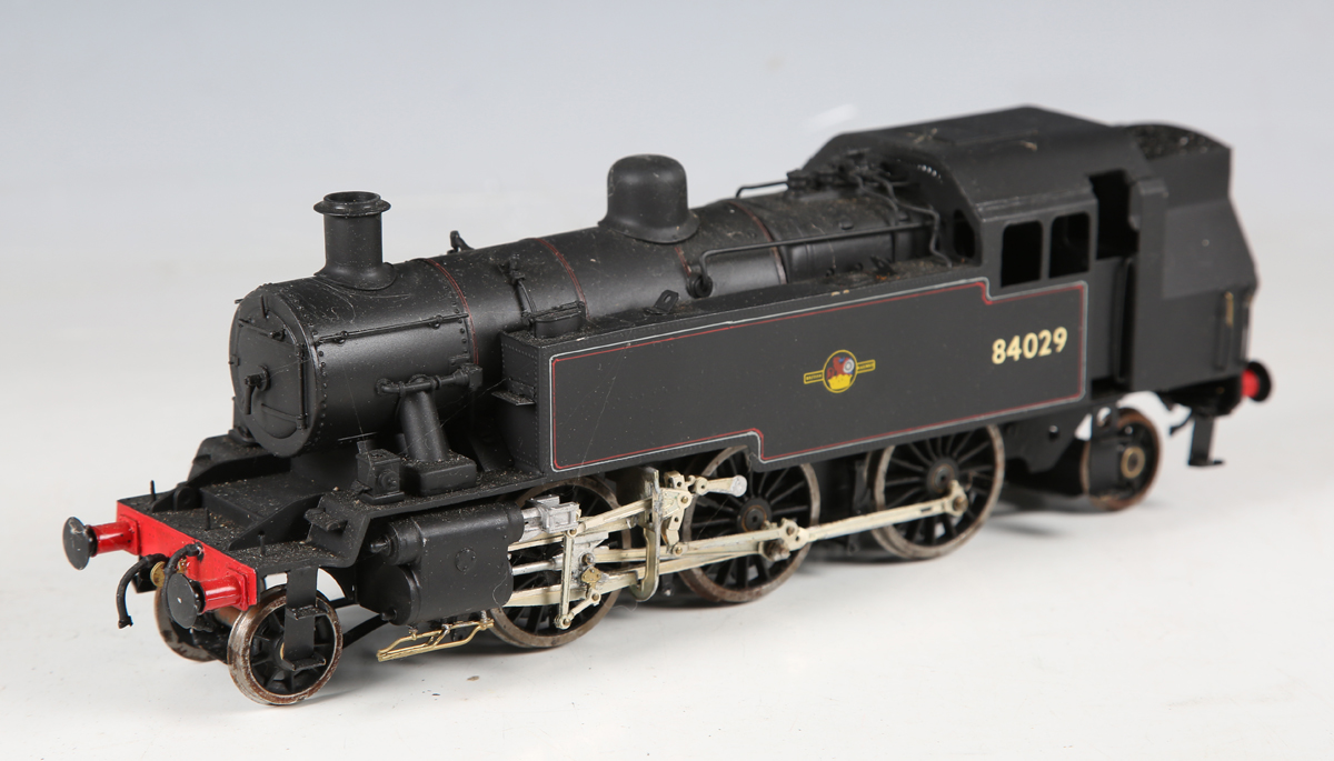 A kit-built O gauge Standard Class 2-6-2 tank locomotive 84029 in BR black with early emblem, signed 'Temple' and dated '03 2011' (some minor paint chips and rust to wheels).
