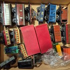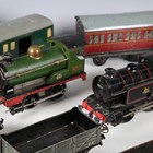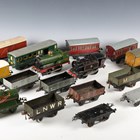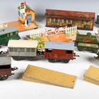 A good collection of Hornby O gauge railway items, including clockwork locomotive 2710 and tender, tank locomotive 82011 in BR black, coaches, goods wagons in various liveries, including Cadbury's, double track engine shed, station and accessories, some boxed (playwear).