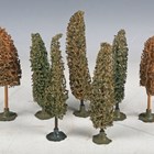 Two Hornby Series O gauge A928 hedges sets, both boxed, together with eight trees, seven with stands (some faults, boxes creased and scuffed).