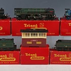 A collection of Tri-ang Railways and Tri-ang Hornby OO gauge items, including R.259S locomotive 'Britannia' and tender, R.350 Class L1 locomotive and tender, R.553 Caledonian locomotive and tender, Pullman and other coaches, goods rolling stock, viaduct, girder bridge and accessories, together with a Trix Twin Railway platform and engine shed.