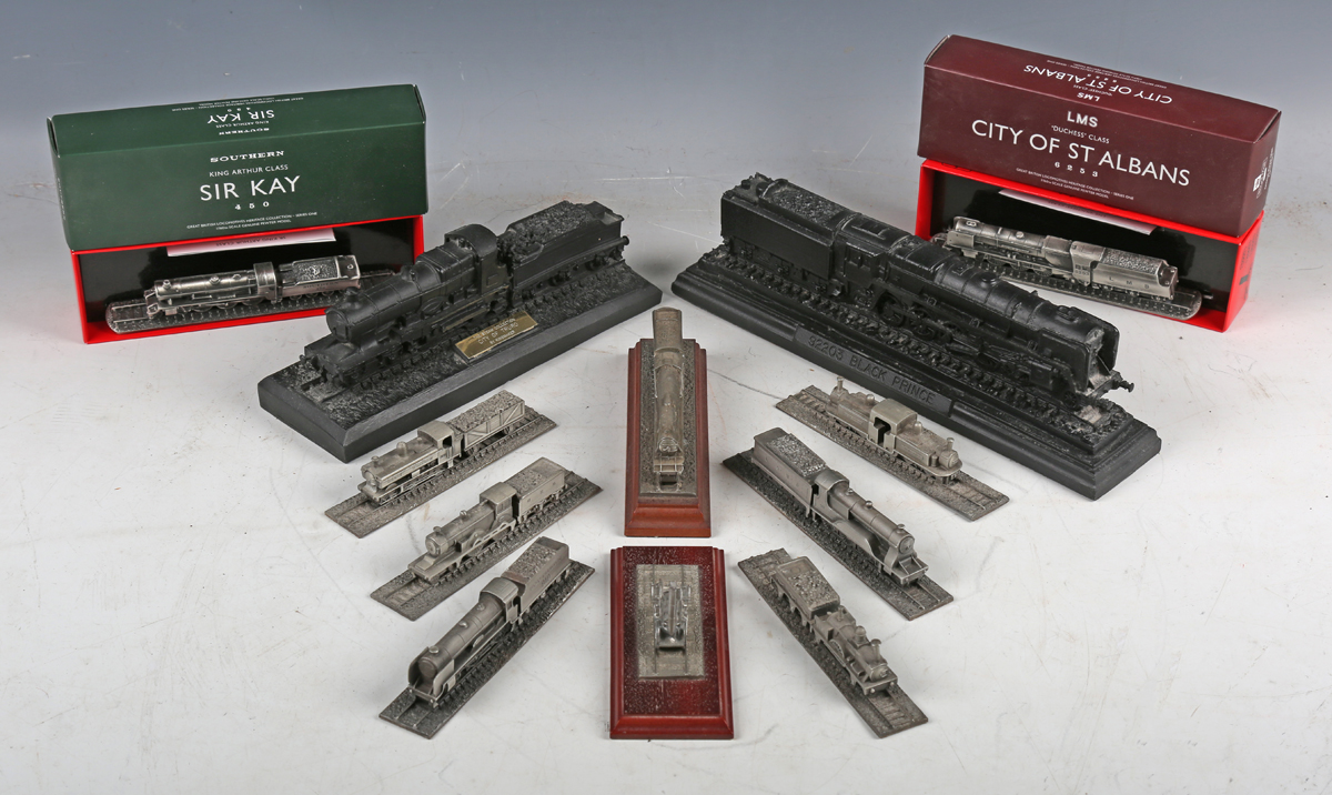 A group of Royal Hampshire Art Foundry pewter model locomotives, including 'Queen Elizabeth', 'Thane of Fife' and 'City of Wells', together with a group of other locomotives, some boxed.