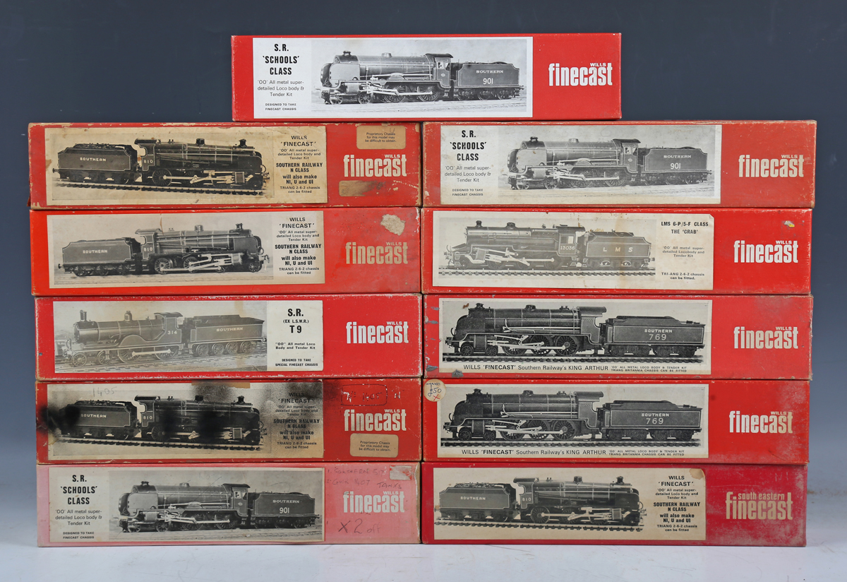 Seventeen Wills Finecast OO gauge locomotives and tenders, including Schools Class and N Class, all boxed (nine built, the others unchecked, boxes creased, torn and scuffed).