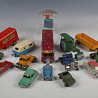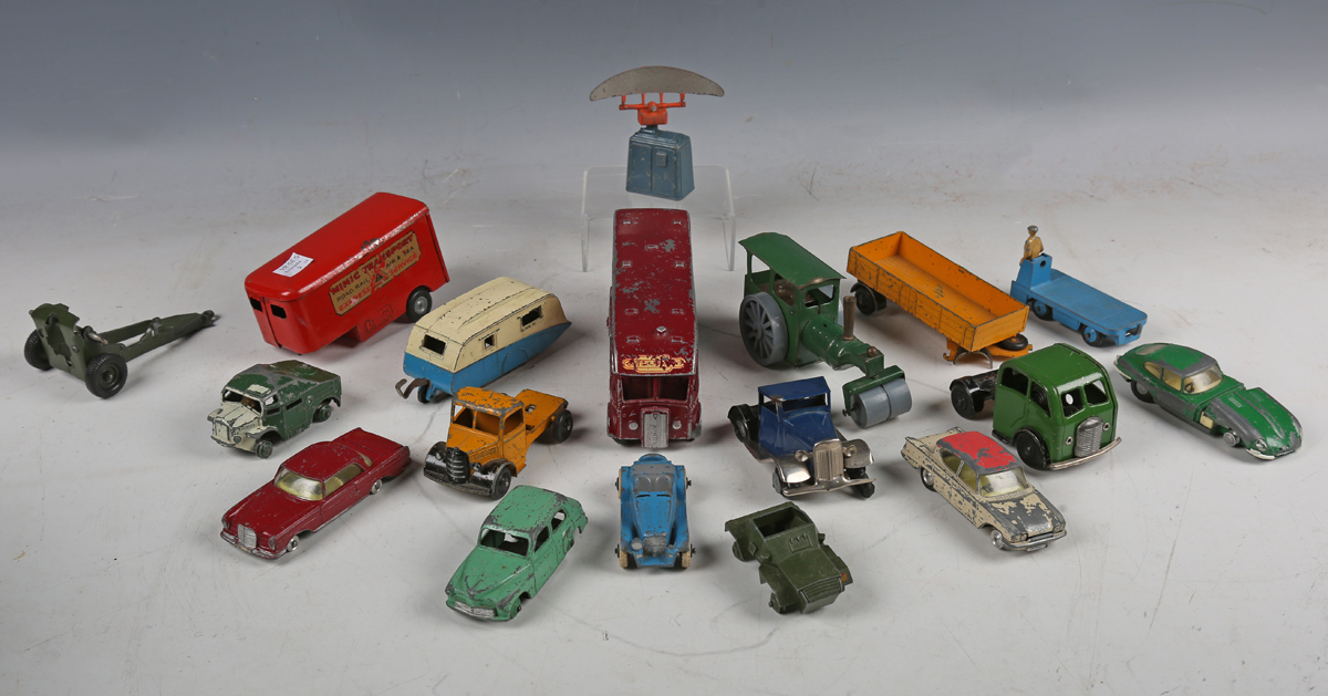 A Minic tinplate clockwork articulated lorry, a Minic traction engine and a tractor unit, together with a group of Dinky Toys and other diecast vehicles (playwear and faults).