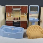 A Pedigree Sindy doll's house and accessories, including three-piece suite, bedroom furniture, kitchen unit, bath, bathroom sink, fridge, dresser, horse and cart (playwear and some faults).