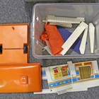 A good collection of Sindy items, including dolls, clothes, accessories, caravan and furniture, including three-piece suite and kitchen units (playwear).