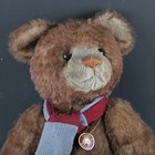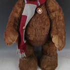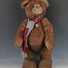 A Charlie Bears Nicholas teddy bear, CB194574, wearing a scarf, with tags.