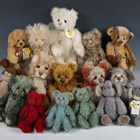 Twenty-two Charlie Bears teddy bears and other animals, including SJ5382 Braveheart, limited edition 166/400, Cora, Raspberry, Pavlova, Patch, Mushy Pea and Teeny, most with tags.