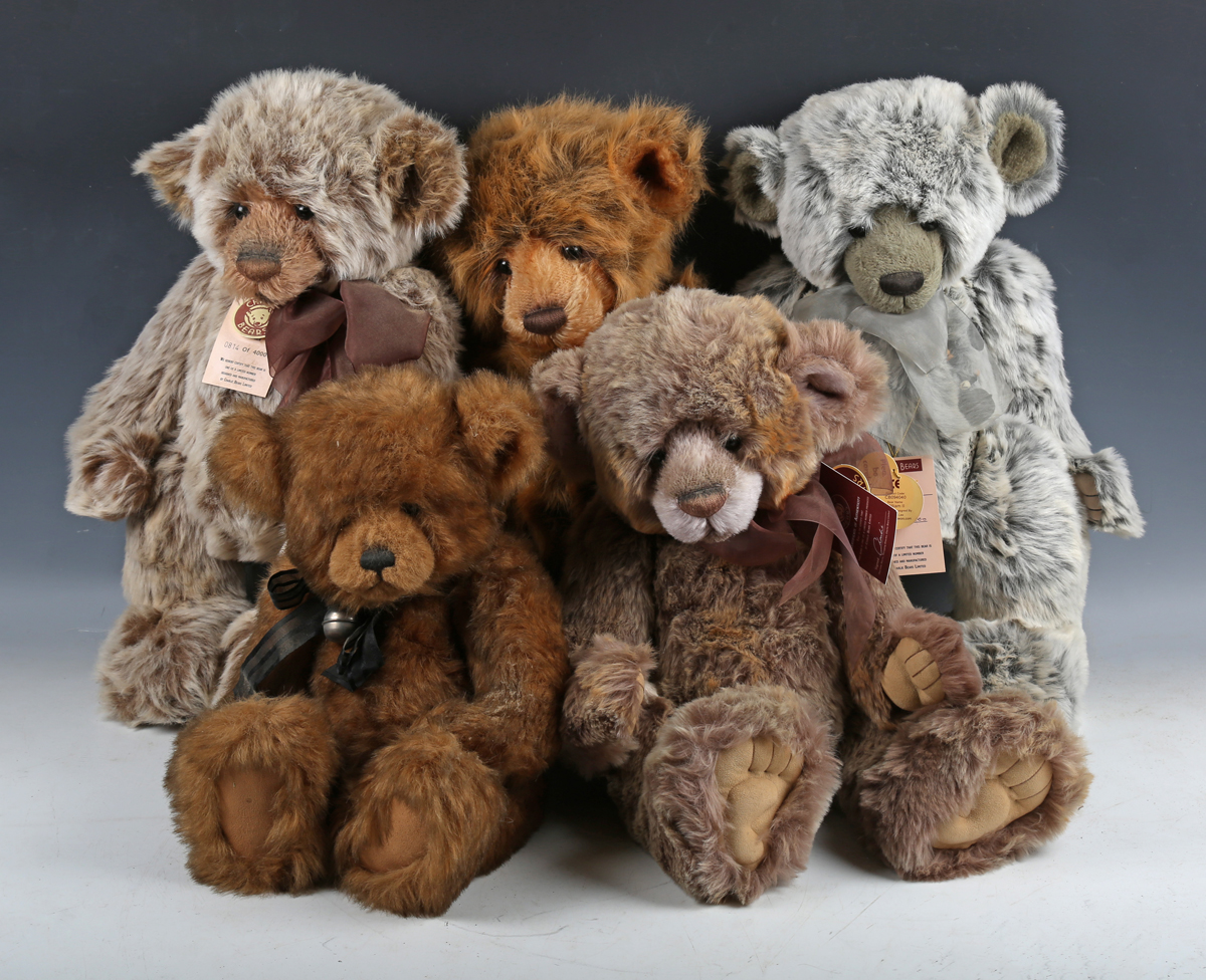 Five Charlie Bears teddy bears, comprising CB083830 William, William IV, limited edition 814/4000, CB104040C William 3rd, limited edition 3/4000, CB094040 William II, limited edition 791/1200, and CB124953A William V.