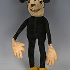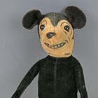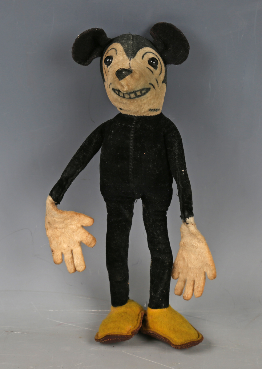 A Dean's Velveteen Mickey Mouse soft toy figure with boot button eyes, height 20cm (some wear and repair).