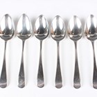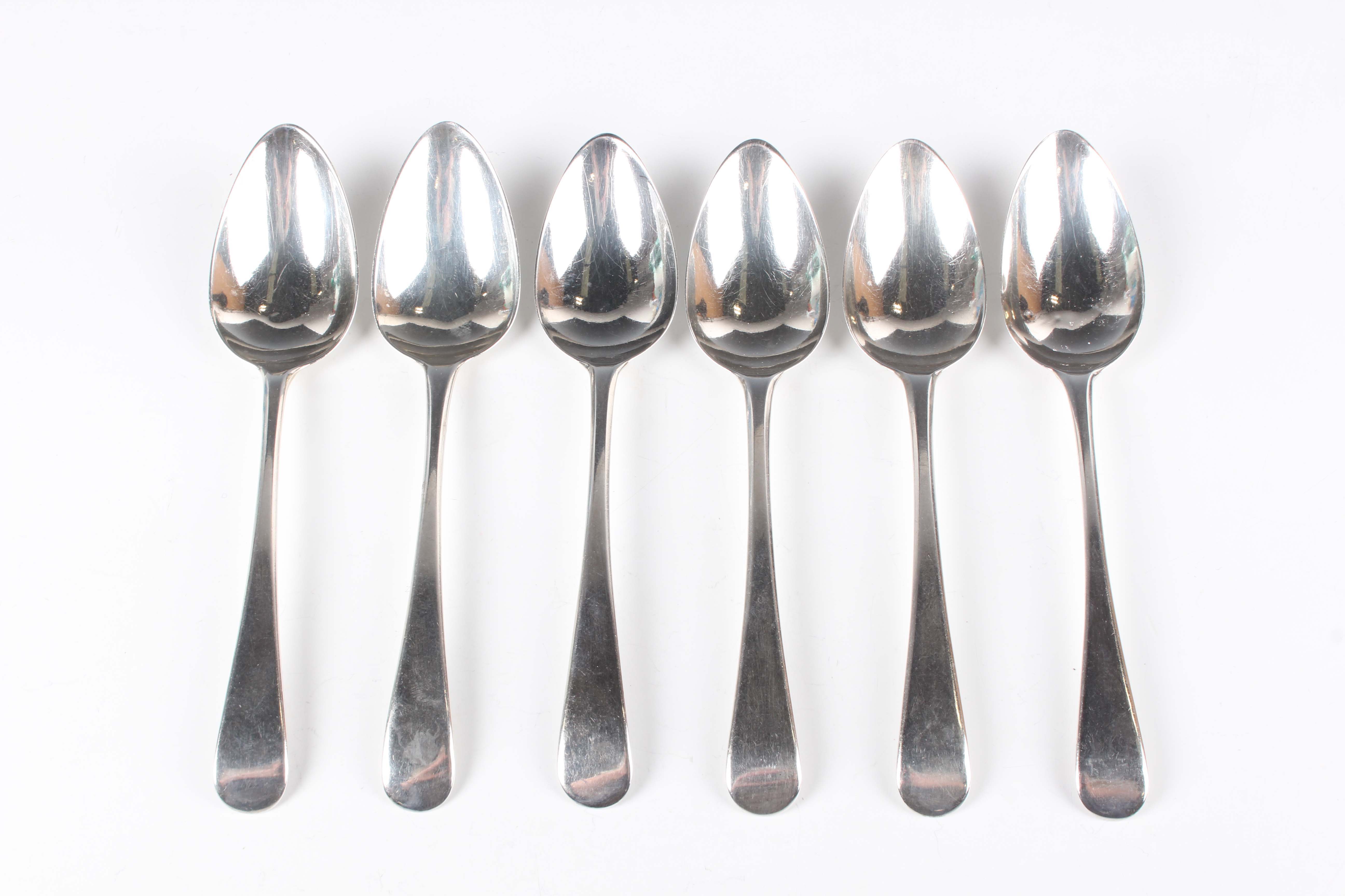 A set of six George III silver Old English pattern dessert spoons, London 1809 by Peter & William Bateman, total weight 214.5g, length 17.6cm.