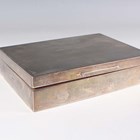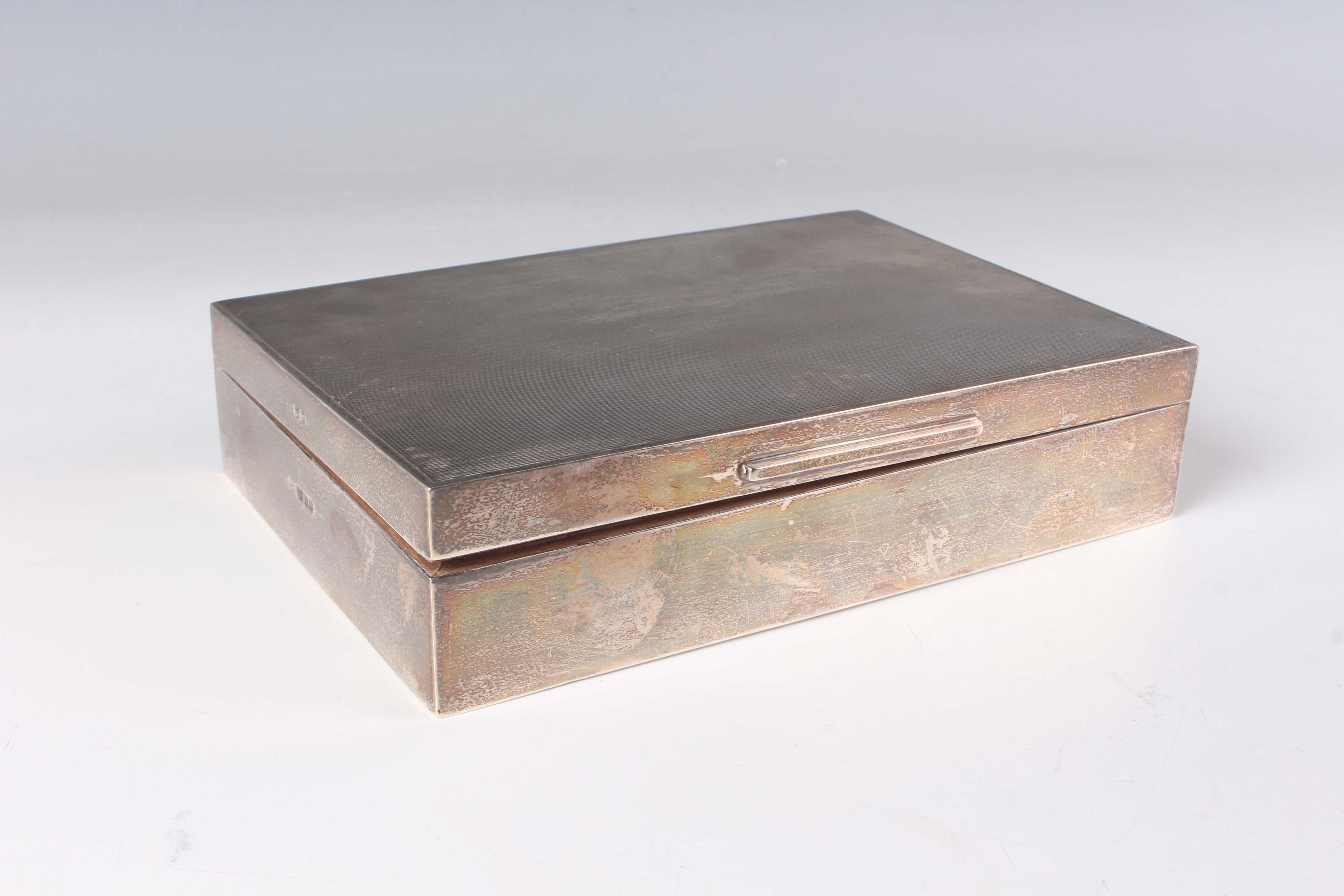 An Elizabeth II silver rectangular cigarette box, the hinged lid with engine turned decoration, London 1970 by Alfred Dunhill & Sons, length 16.5cm.