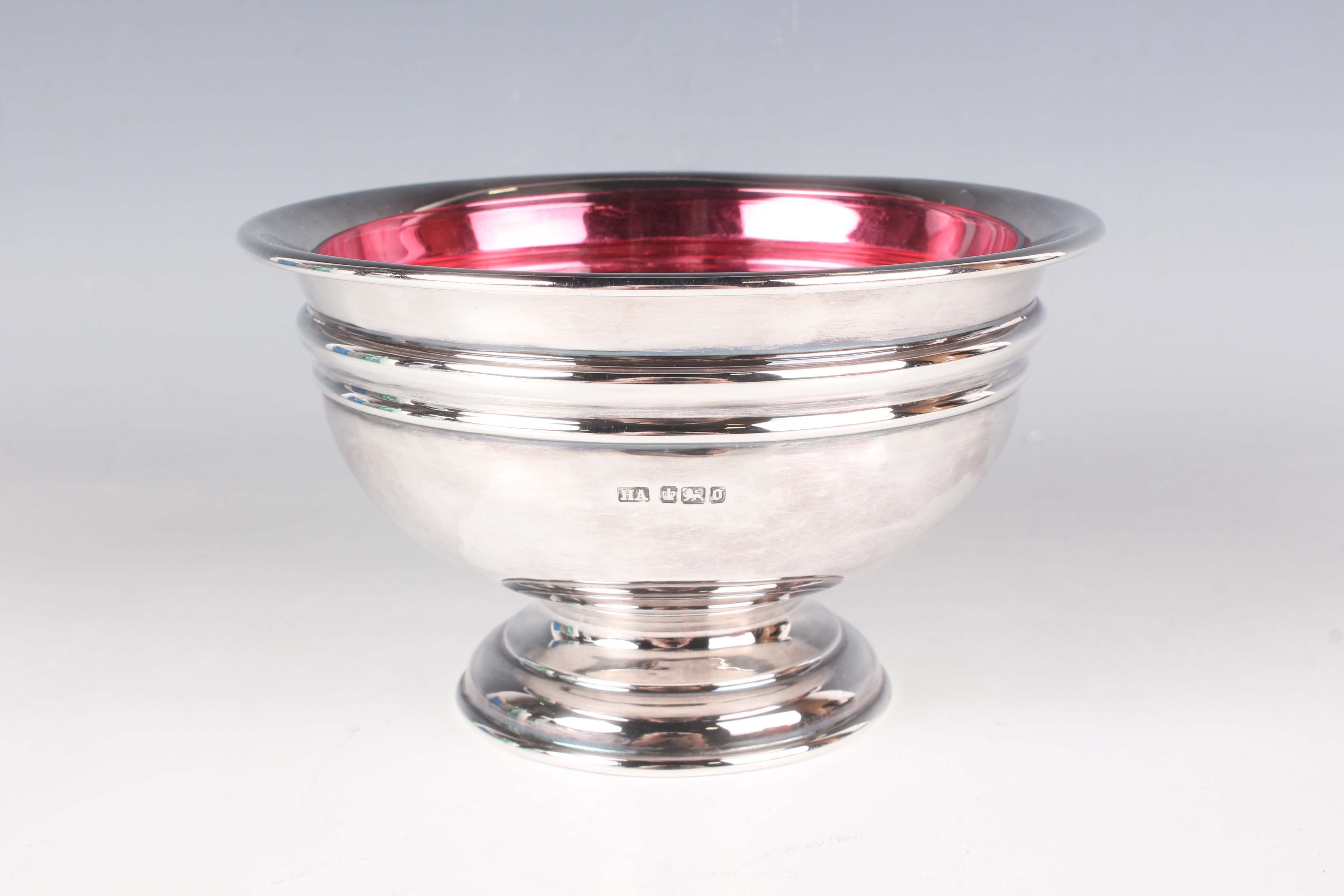 An Edwardian silver rose bowl of circular girdled form on a circular domed foot, Sheffield 1906 by Atkin Brothers, weight 229.7g, height 9cm, diameter 15.3cm.