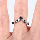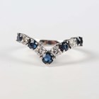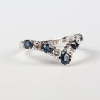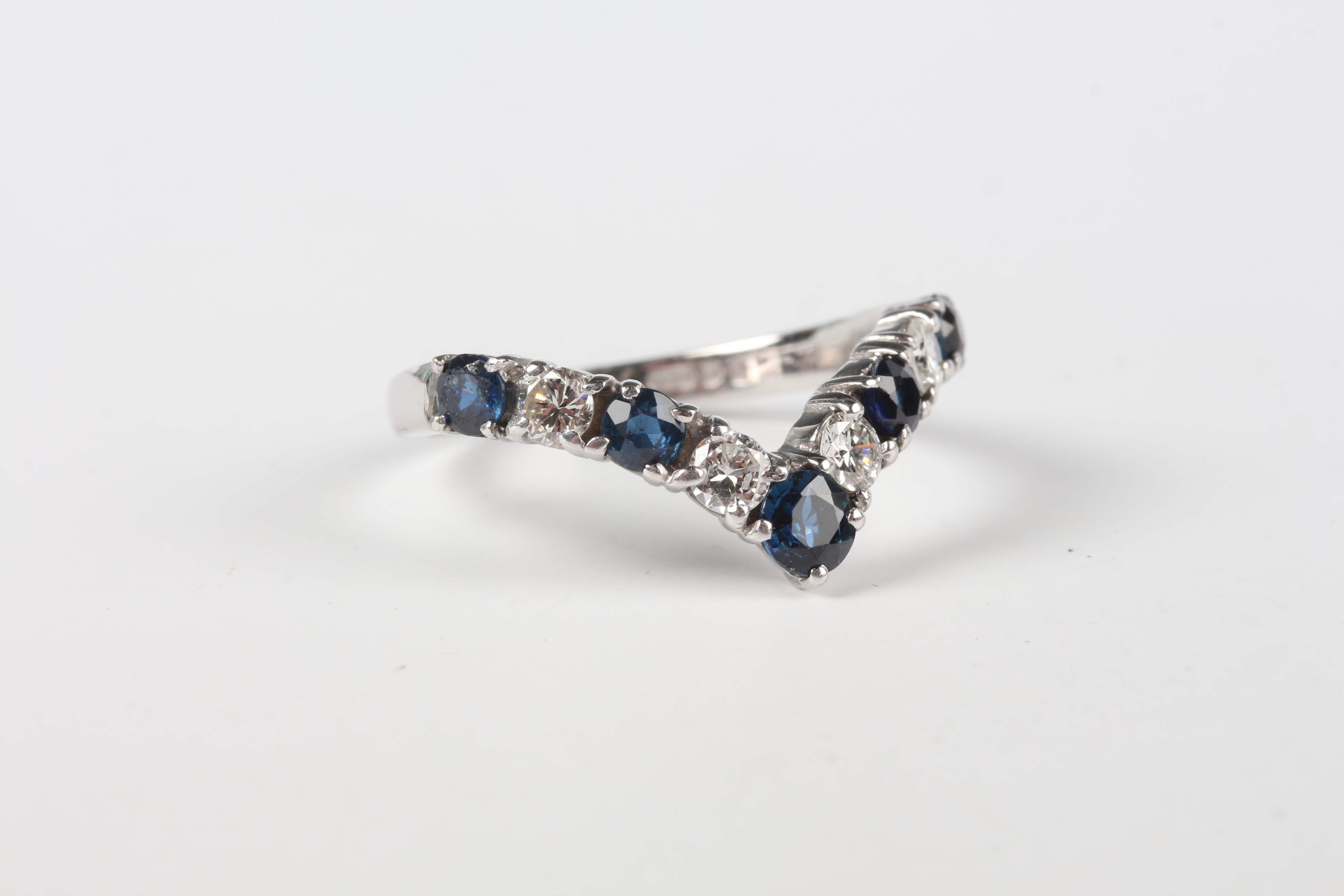 An 18ct white gold, diamond and sapphire ring, claw set with four circular cut diamonds alternating with five circular cut sapphires in a ‘V’ shaped design, London 1977, weight 3.4g, ring size approx P.