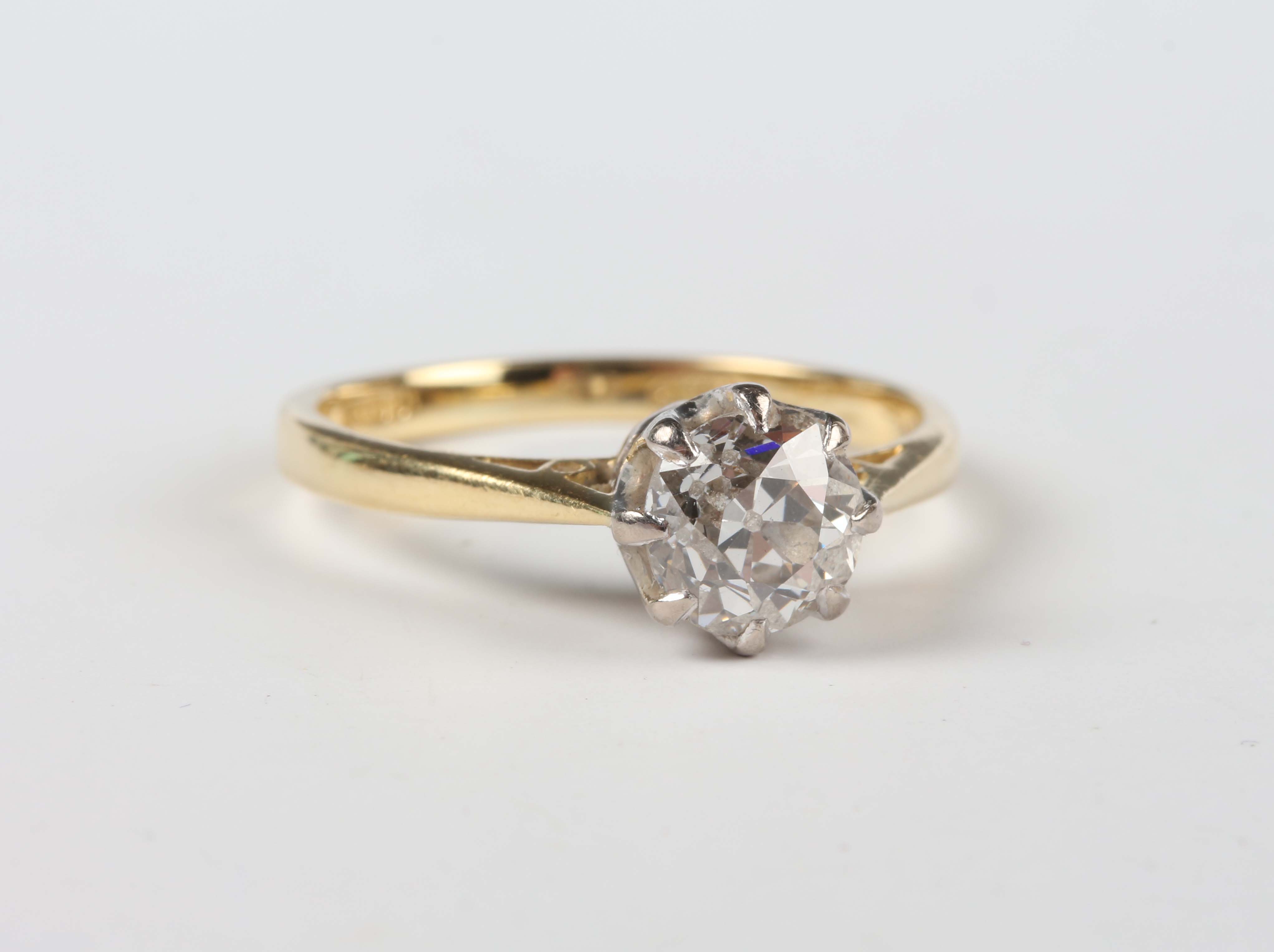 An 18ct gold and diamond single stone ring, claw set with an old cut cushion shaped diamond, London 2001, weight 3g, diamond weight approx 1.00ct, ring size approx M.