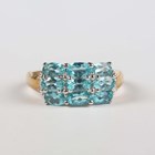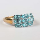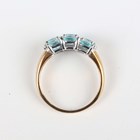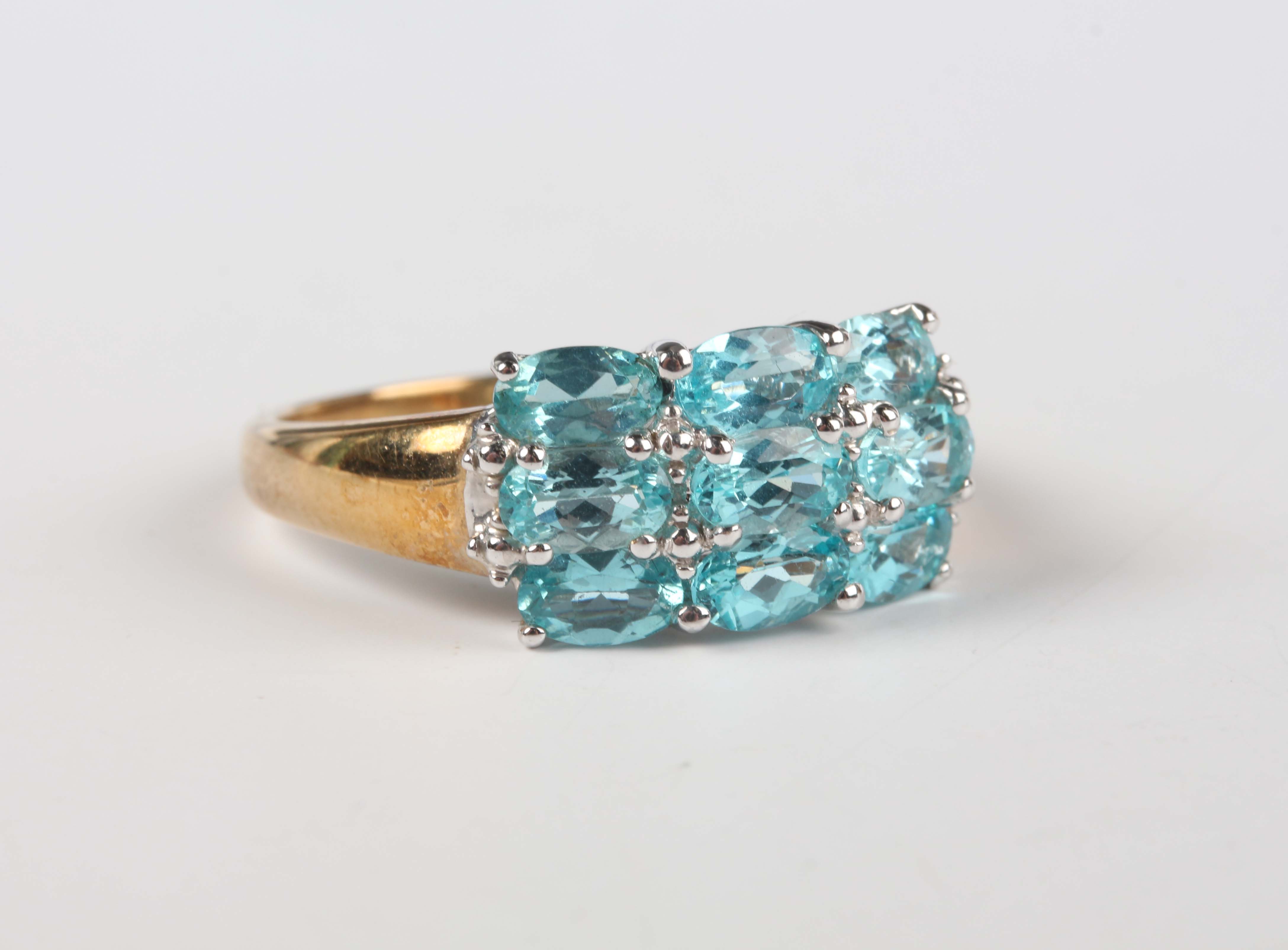 A 9ct gold ring, mounted with three rows of three oval cut blue apatites, weight 3g, ring size approx Q1/2.