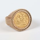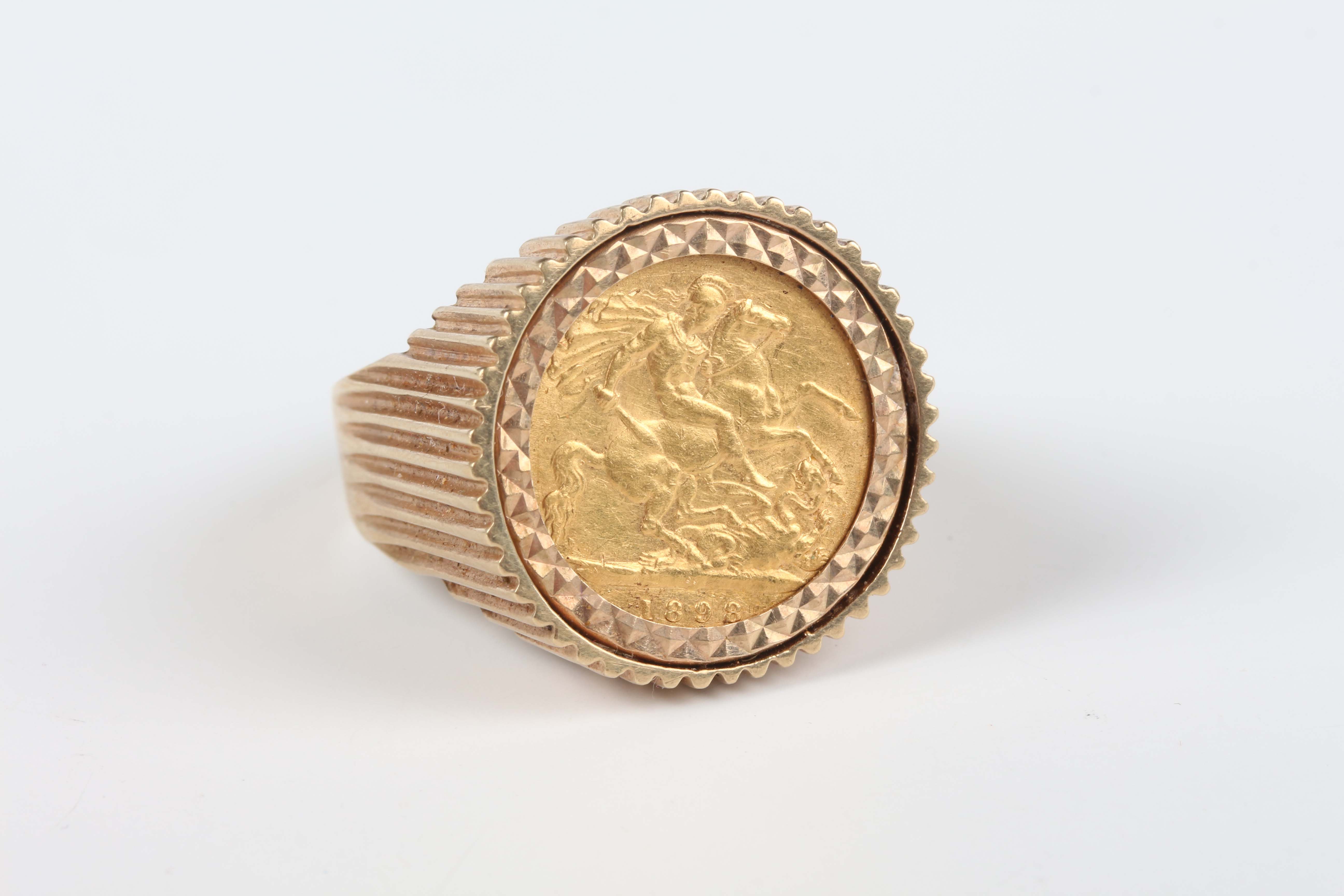 A 9ct gold ring, mounted with a Victoria Veiled Head half-sovereign 1898, ring size approx Y, total weight 12.8g.