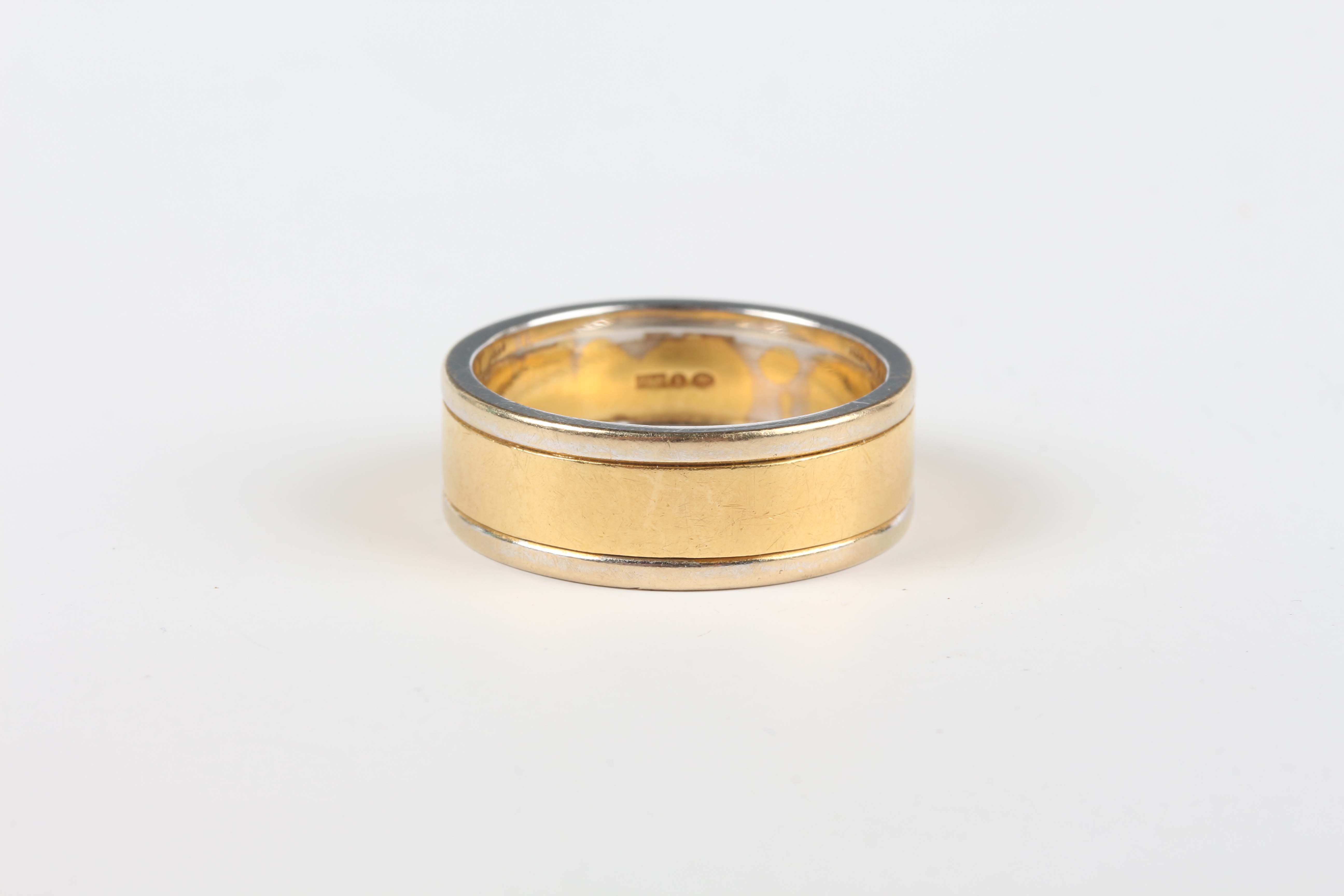 An 18ct two colour gold wedding band ring, weight 13.4g, ring size approx V1/2.