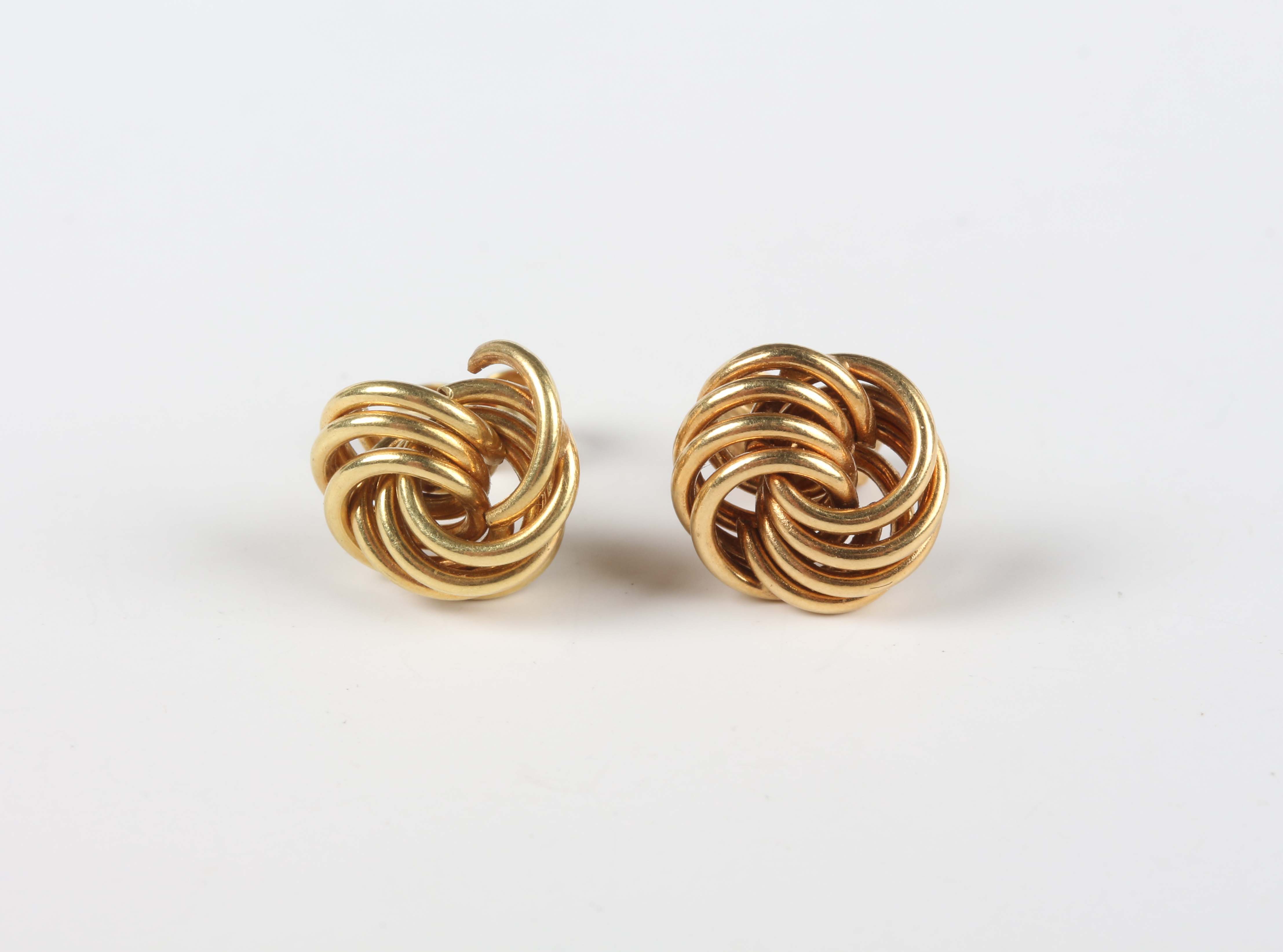A pair of 18ct gold earstuds of interwoven design, with post fittings, weight 1.2g, length 1cm (broken).