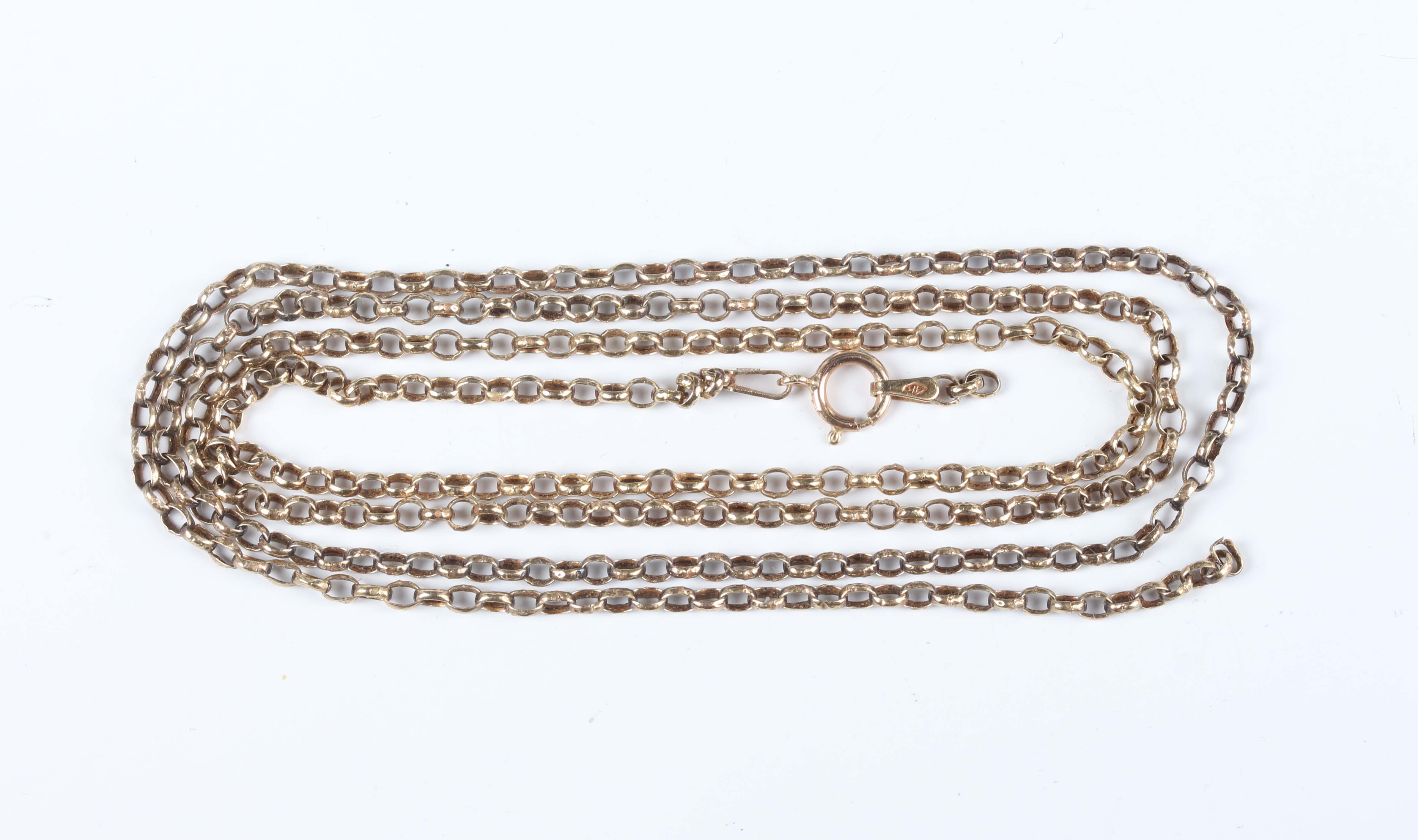 A 9ct gold oval link neckchain on a boltring clasp, weight 2.3g, length 65.5cm (broken).