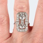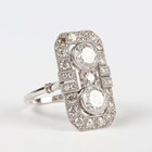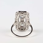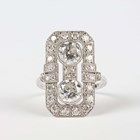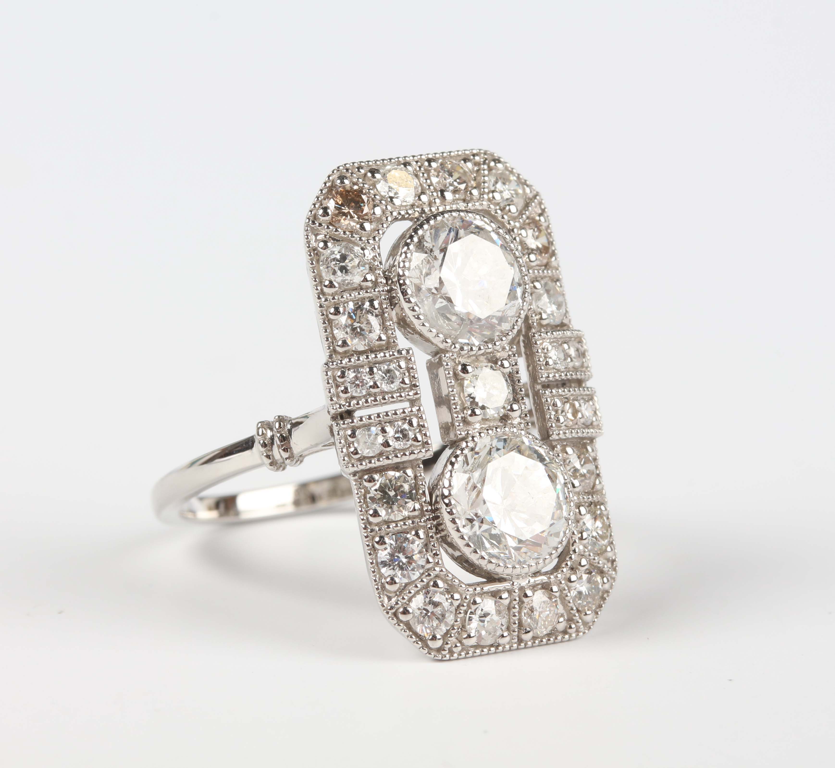 A platinum and diamond panel shaped ring of octagonal form, collet set with two principal circular cut diamonds, otherwise mounted with smaller circular cut diamonds, detailed ‘Pt950’, weight 6.2g, total diamond weight approx 2.78ct, ring size approx M1/2, with a World Gemological Institute report.