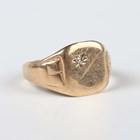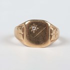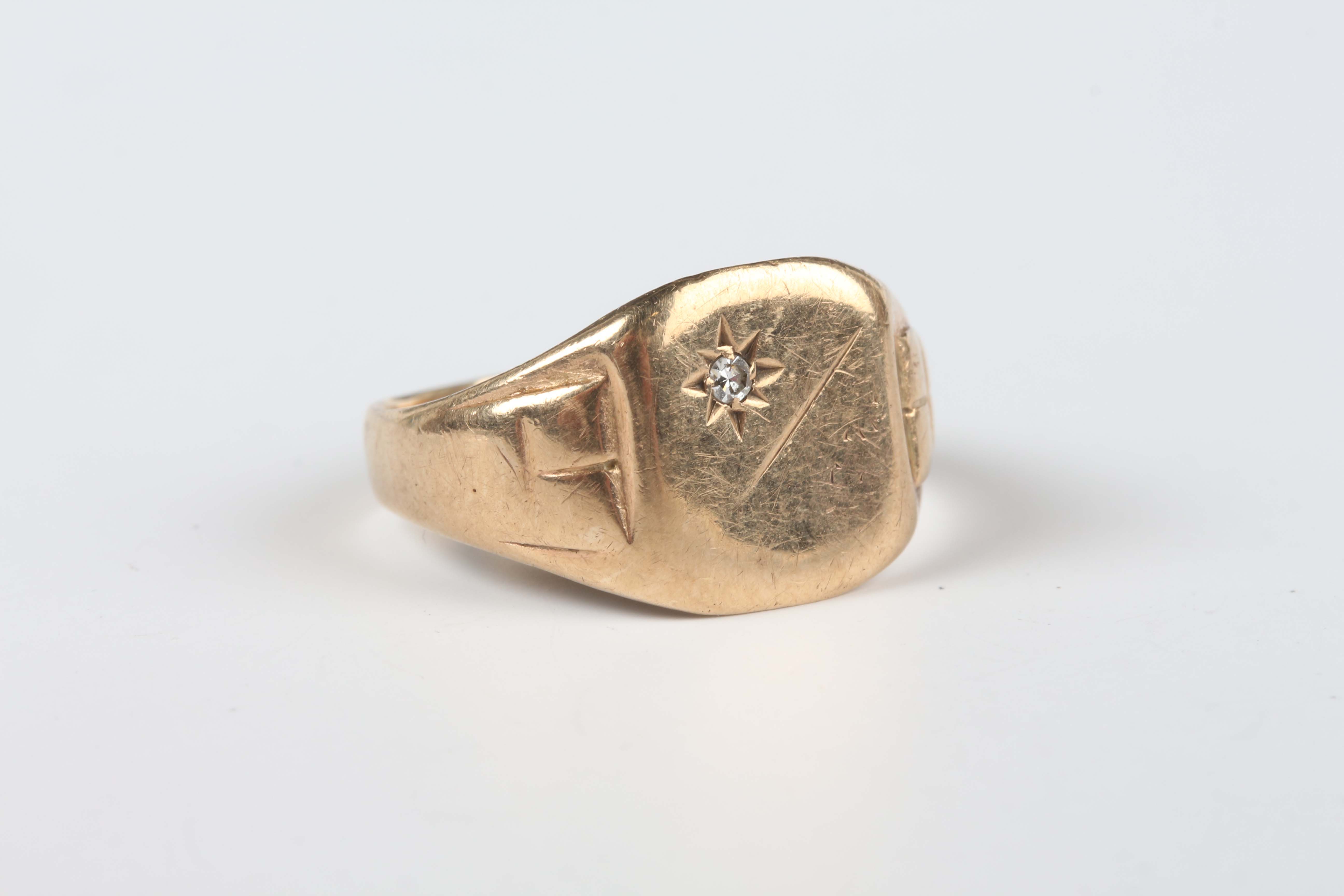 A 9ct gold and diamond rectangular signet style ring, star set with a single cut diamond, Birmingham 1971, weight 3.7g, ring size approx P.