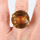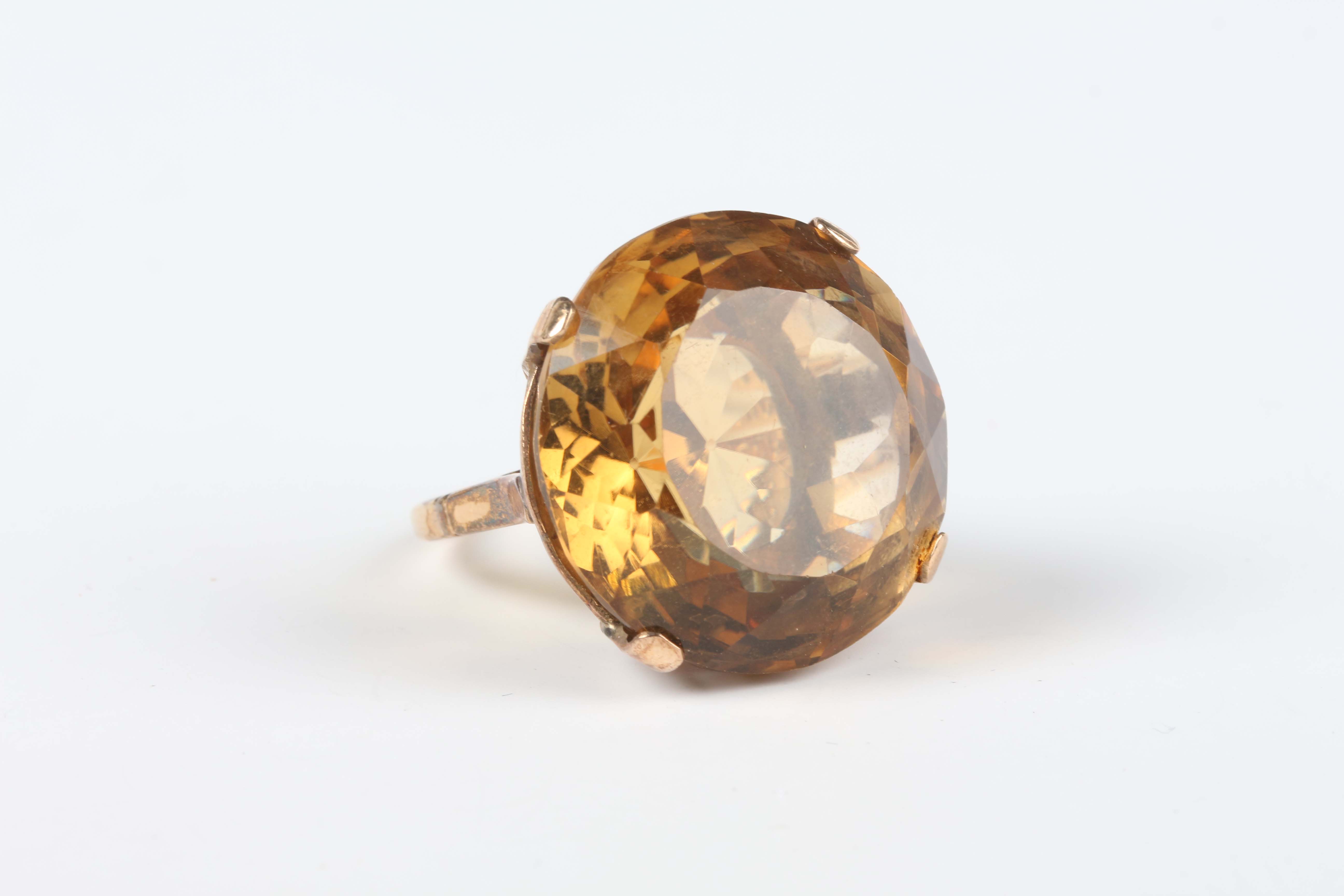 A gold ring, claw set with a large circular cut citrine, detailed ‘9ct’, weight 15g, ring size approx K.