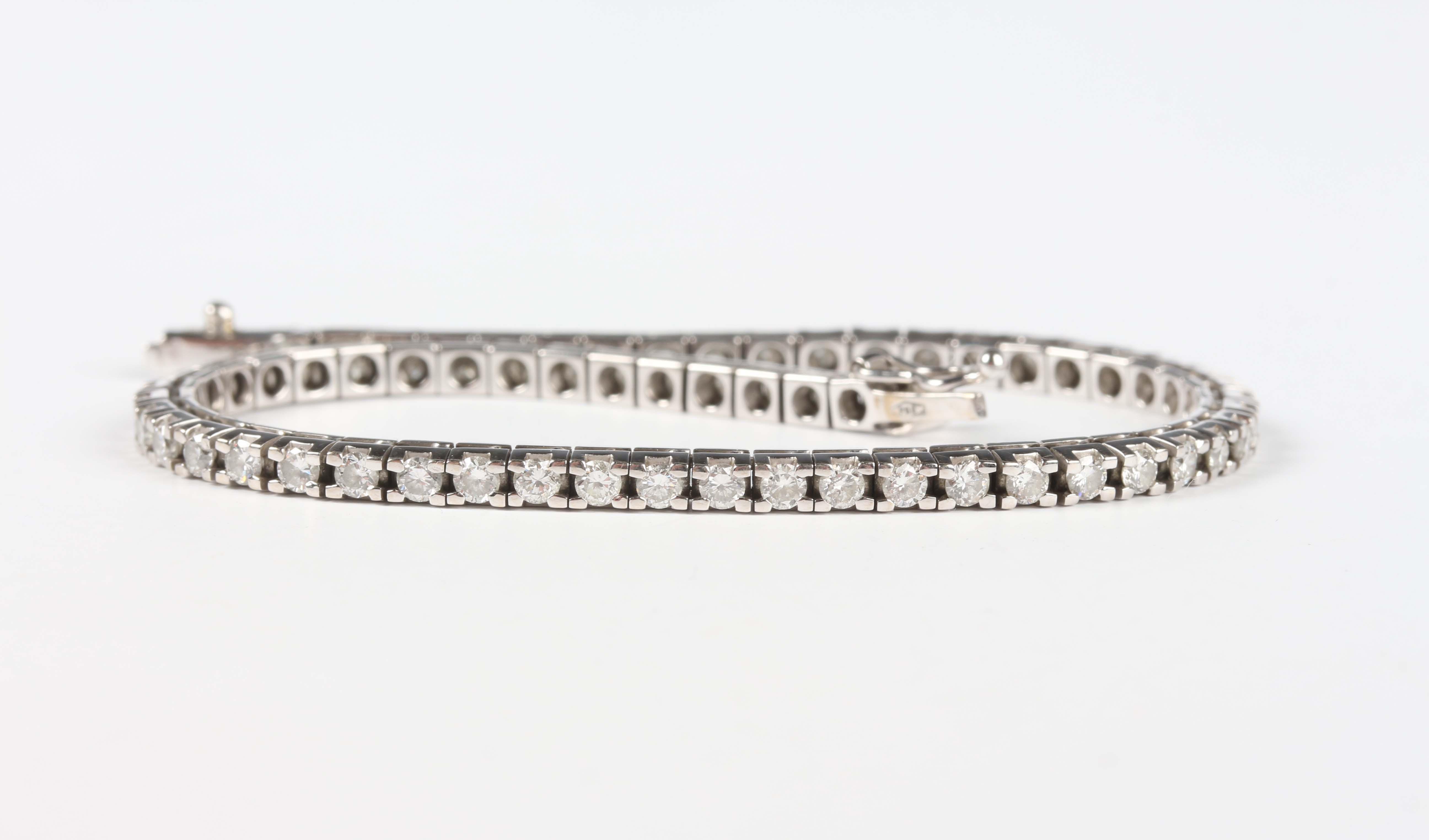 An 18ct white gold and diamond bracelet, mounted with a row of circular cut diamonds, on a snap clasp, weight 13.2g, total diamond weight approx 2.80ct, length 19cm.