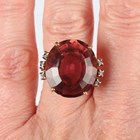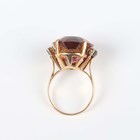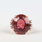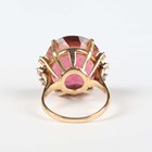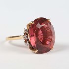 A gold, pink tourmaline and diamond ring, claw set with the large oval mixed cut tourmaline between diamond three stone shoulders, unmarked, weight 10.6g, ring size approx P.