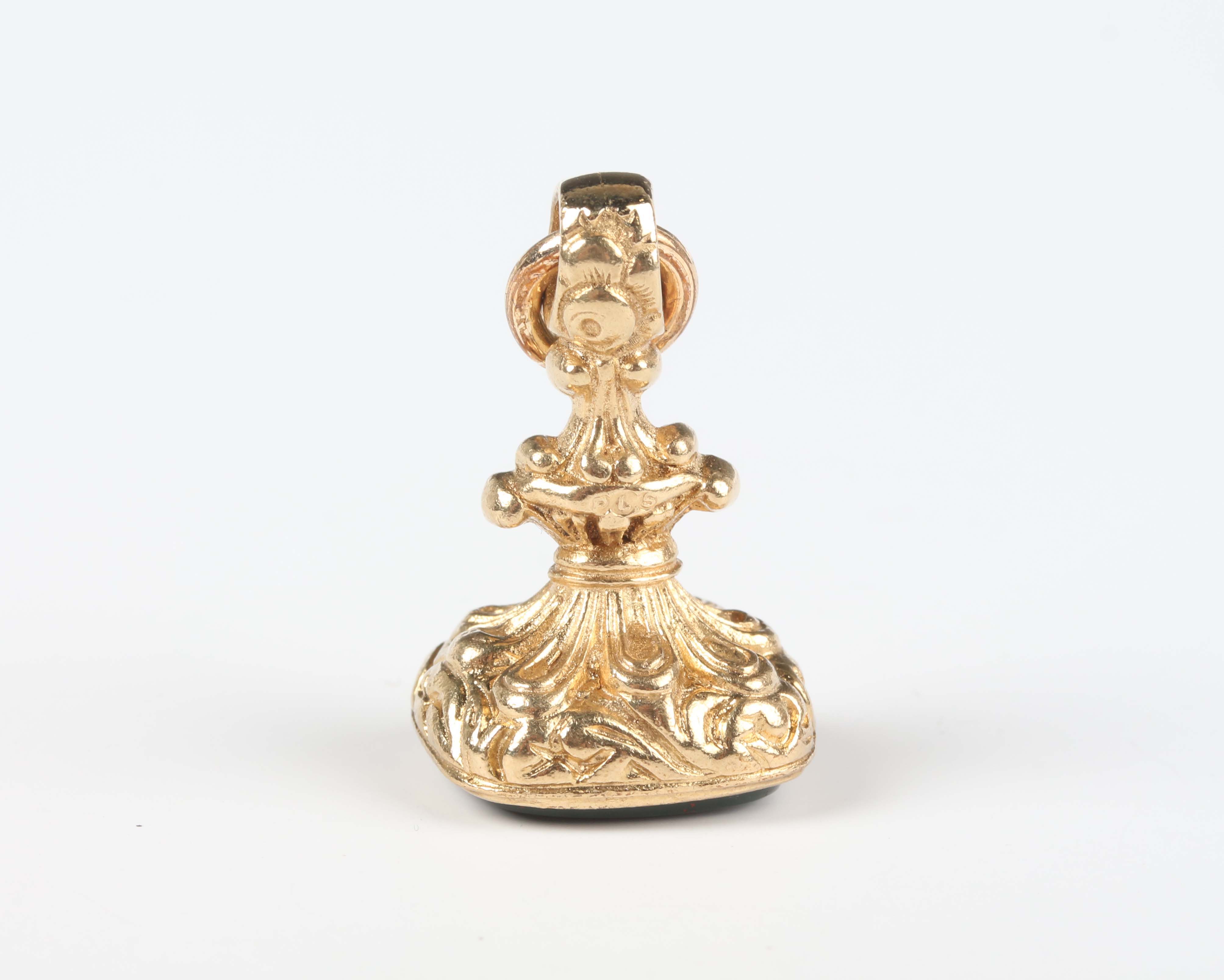 A 9ct gold cased and bloodstone pendant fob seal, London 1973, weight 10.5g, height 3.4cm.