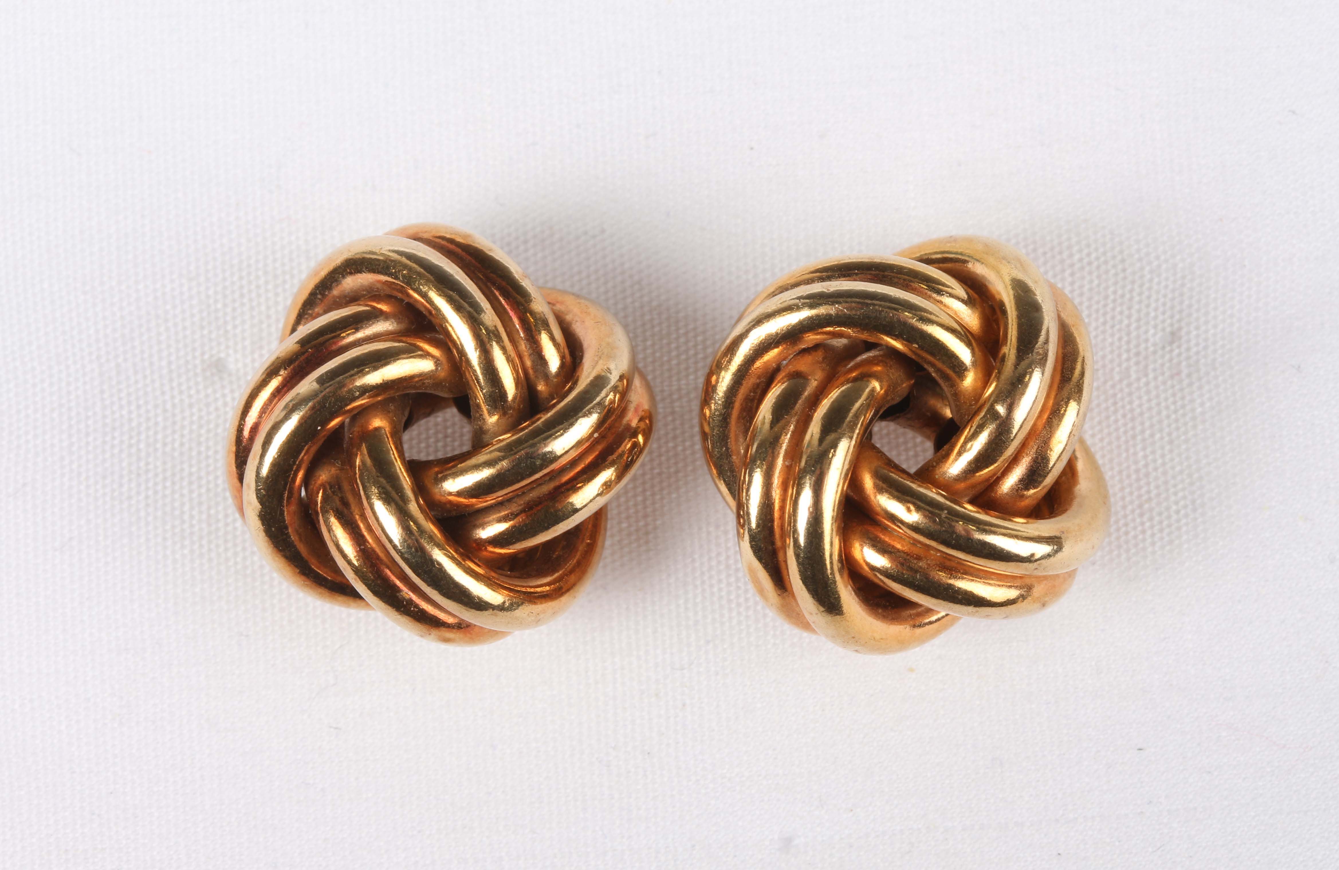 A pair of 9ct gold earrings in a knot design, with post and gilt metal butterflies, weight excluding butterflies 4.5g, length 1.6cm.