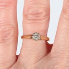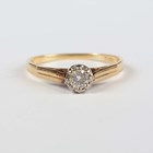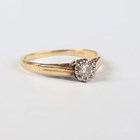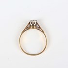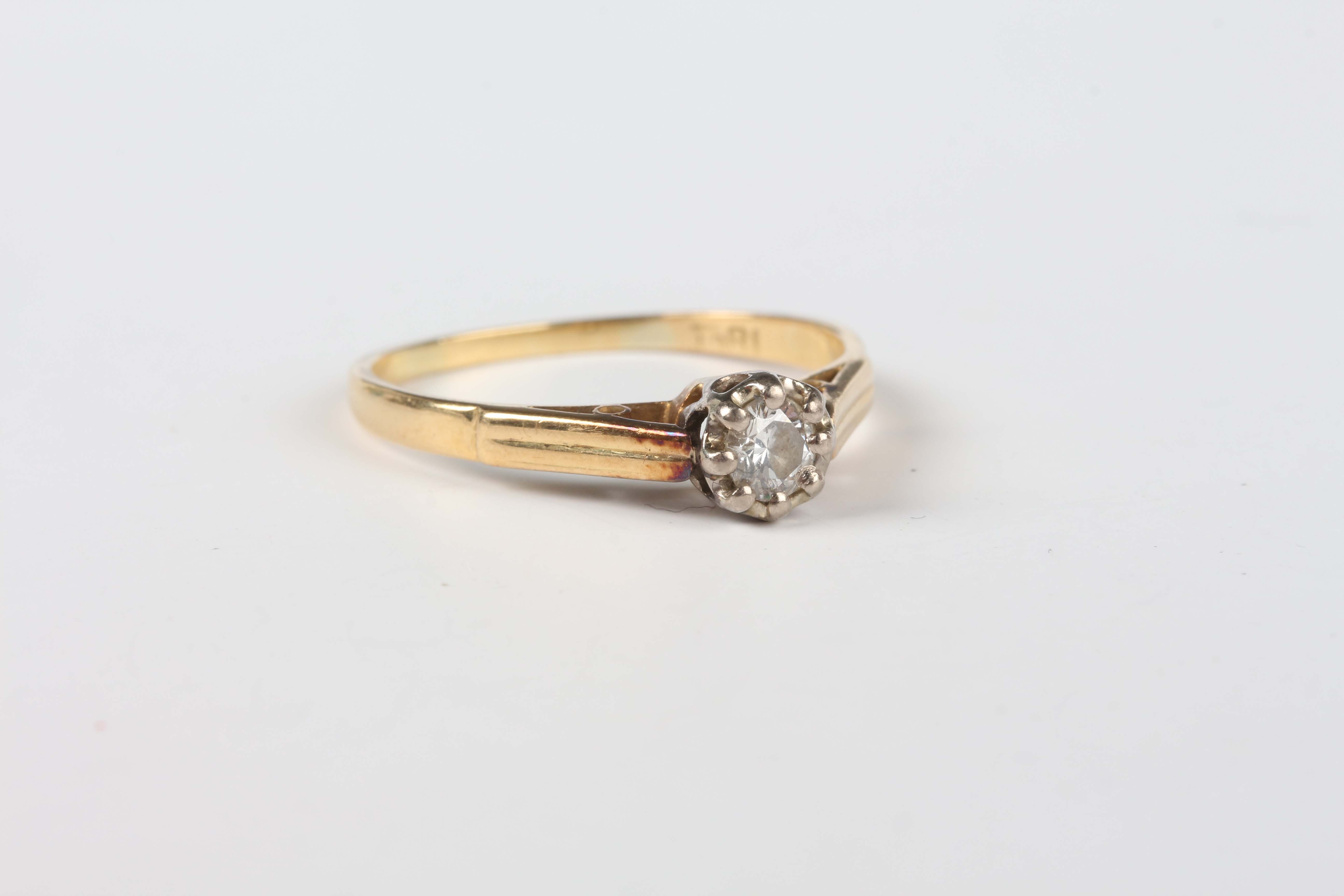 A gold and diamond single stone ring, mounted with a circular cut diamond, detailed ‘18ct’, weight 2.6g, ring size approx O1/2.