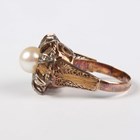 A Continental gold, cultured pearl and colourless gem set ring, the central cultured pearl within a colourless gem set eight stone surround, between pierced shoulders, weight 5.3g, ring size approx N1/2.