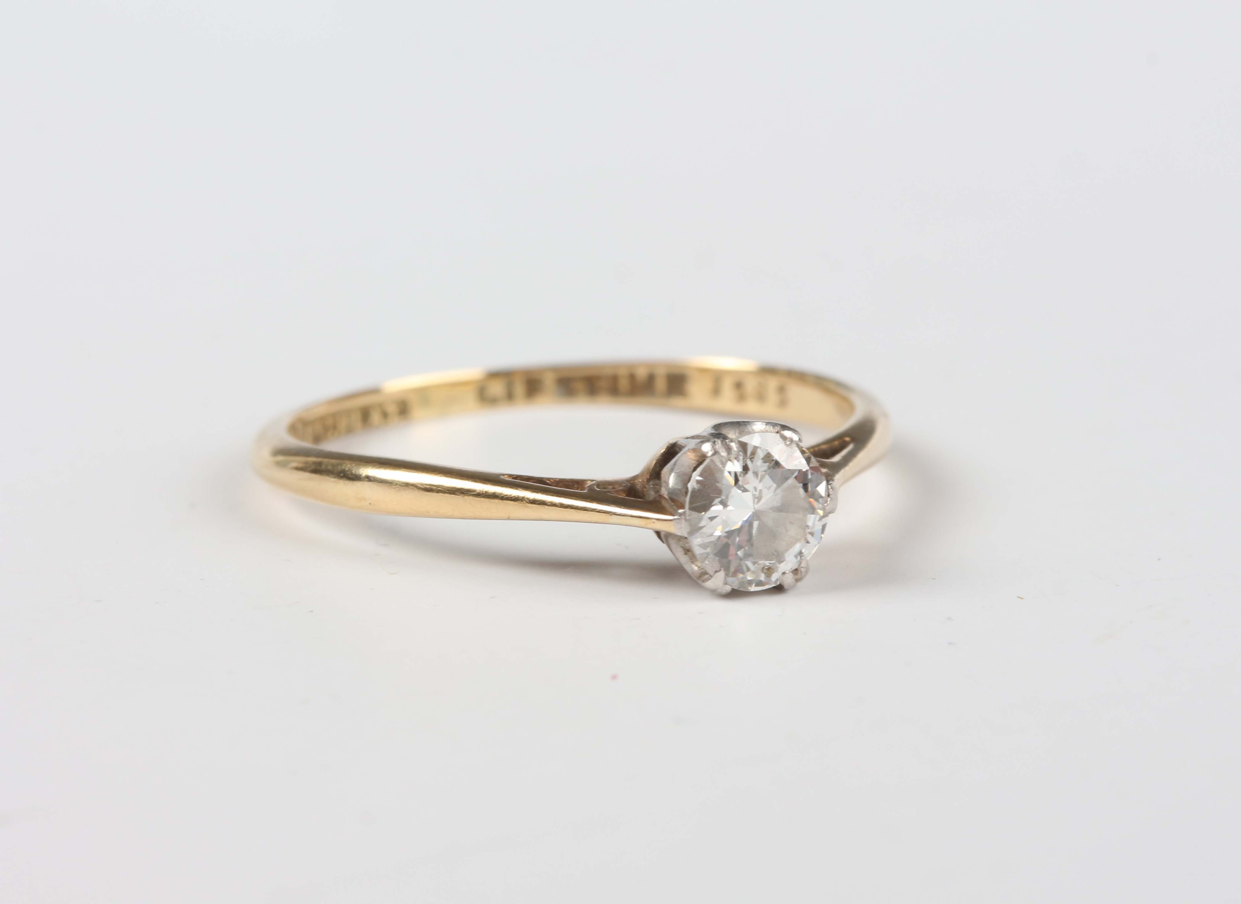 An 18ct gold, platinum and diamond single stone ring, claw set with a circular cut diamond, detailed '18ct PLAT', weight 1.7g, diamond weight approx 0.40ct, ring size approx N.