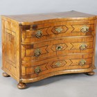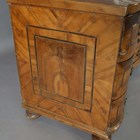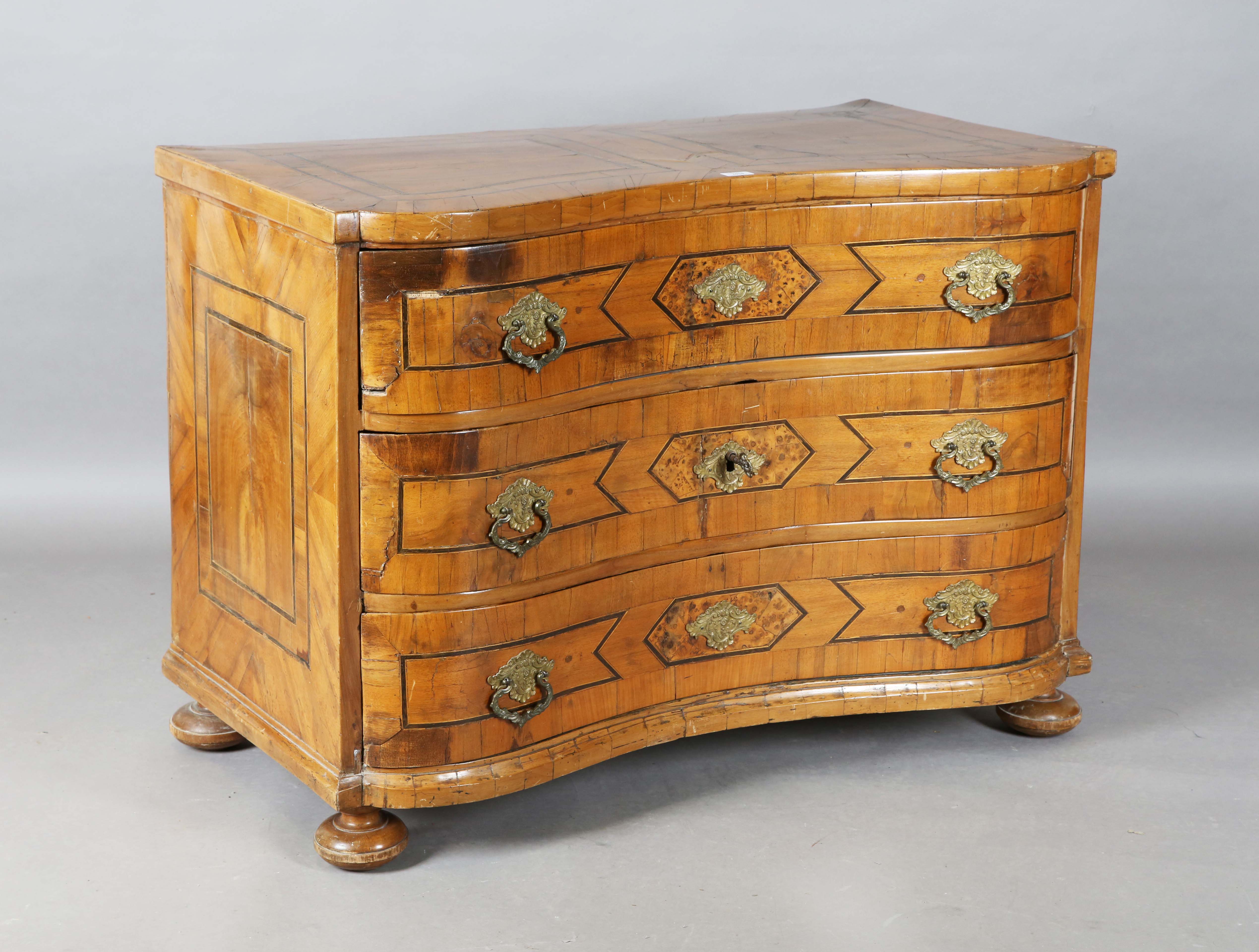 A mid-18th century Italian walnut three-drawer commode with crossbanded borders and inlaid pollarded reserves, height 79cm, width 109cm, depth 60cm.